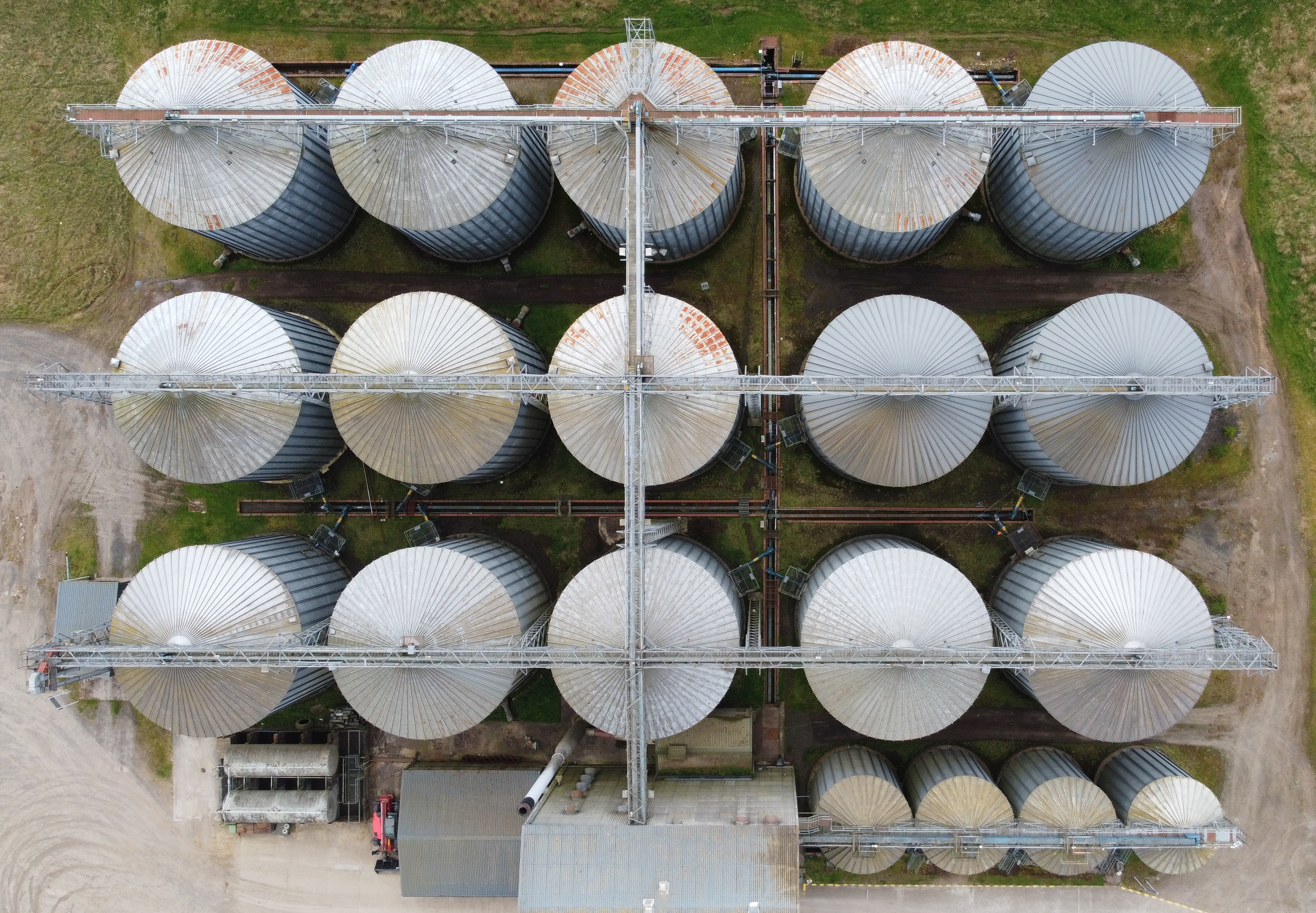 Taken on 8th May at 11:11am using the mini2 at 120mtrs AGL and looking down. Grain silos near Saucher in Perth and Kinross