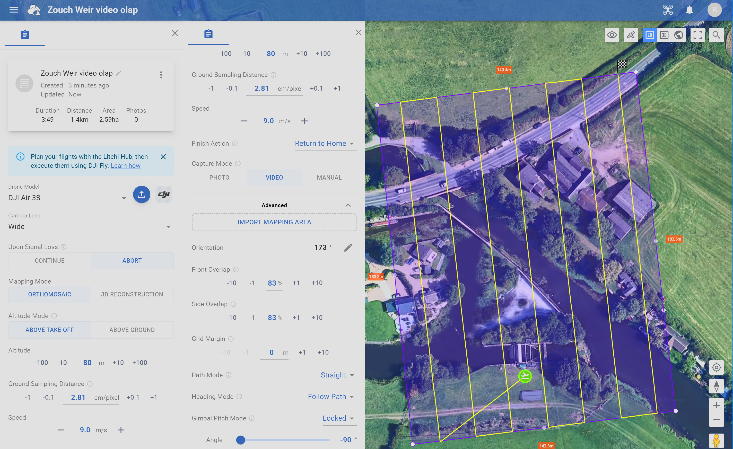 I identified four possibilities and to standardise the test I flew a Litchi waypoints mission at a favourite site and used its output to feed the modellers. I prefer Litchi because it flies a straight line where I want it to, rather than the wibbly-wobbly DJI routes: