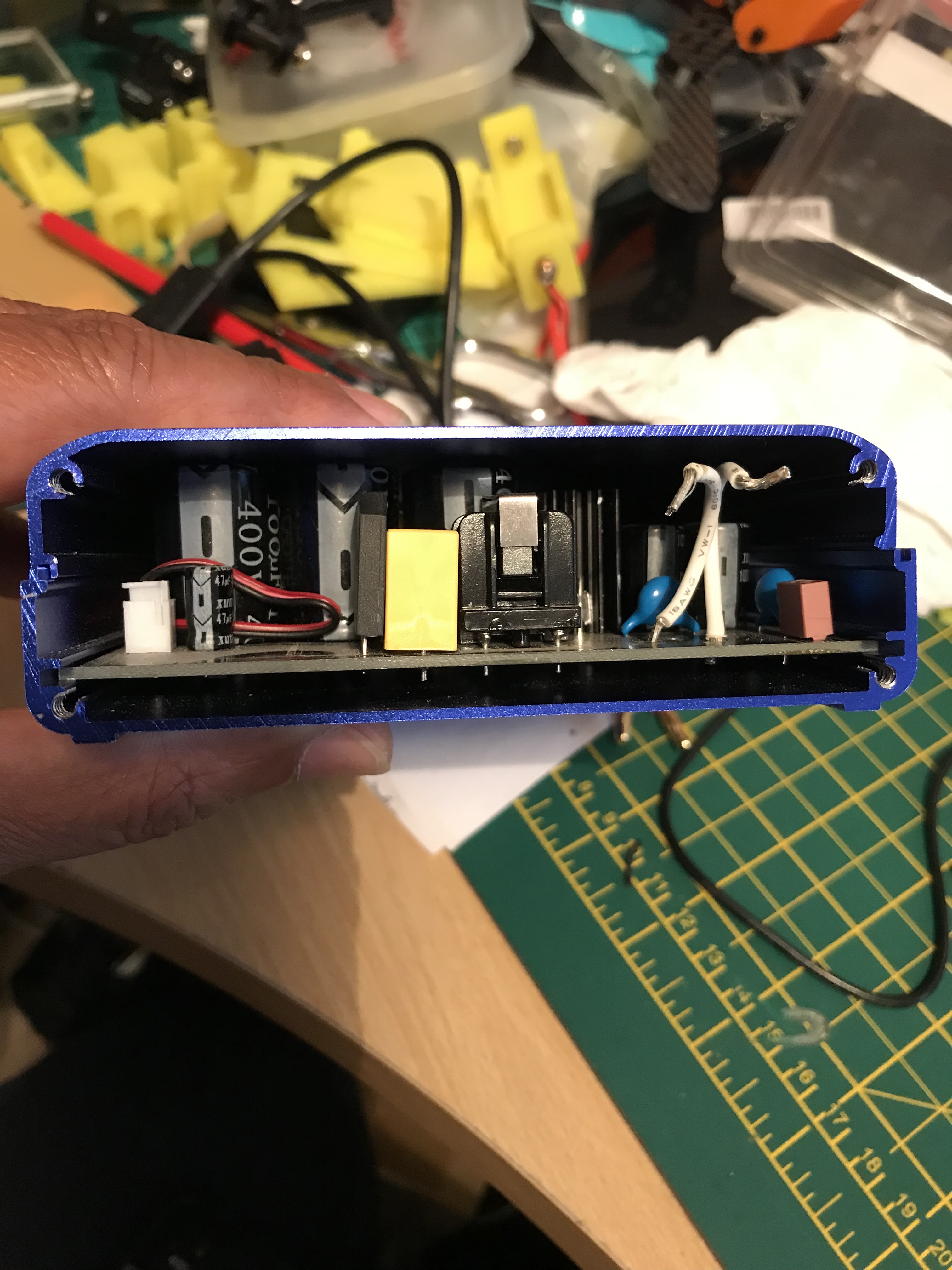 Sooo I took it further apart, I had to remove the double sided tape attaching the cooling fan to the case. There are wire wound transformers in there so it might be worthwhile adding the earth wire. The components are well away from the case and should never come into contact with the case without an external influence.