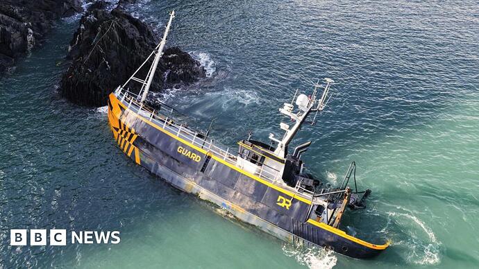 It’s a bit worrying that she was drifting for some time and it was not until the following day that she was spotted on the rocks. Was nobody monitoring her? The CG probably were but they’re keeping schtum; perhaps they expect legal problems. These are busy shipping lanes, traffic heading south out of the Celtic Sea from Dublin or Liverpool, ferries from Fishguard & Pembroke Dock to Rosslare, and coastal tankers heading for Milford Haven all pass close to the area, and, abandoned and possibly without power, so no lights, she must’ve been a significant collision hazard!