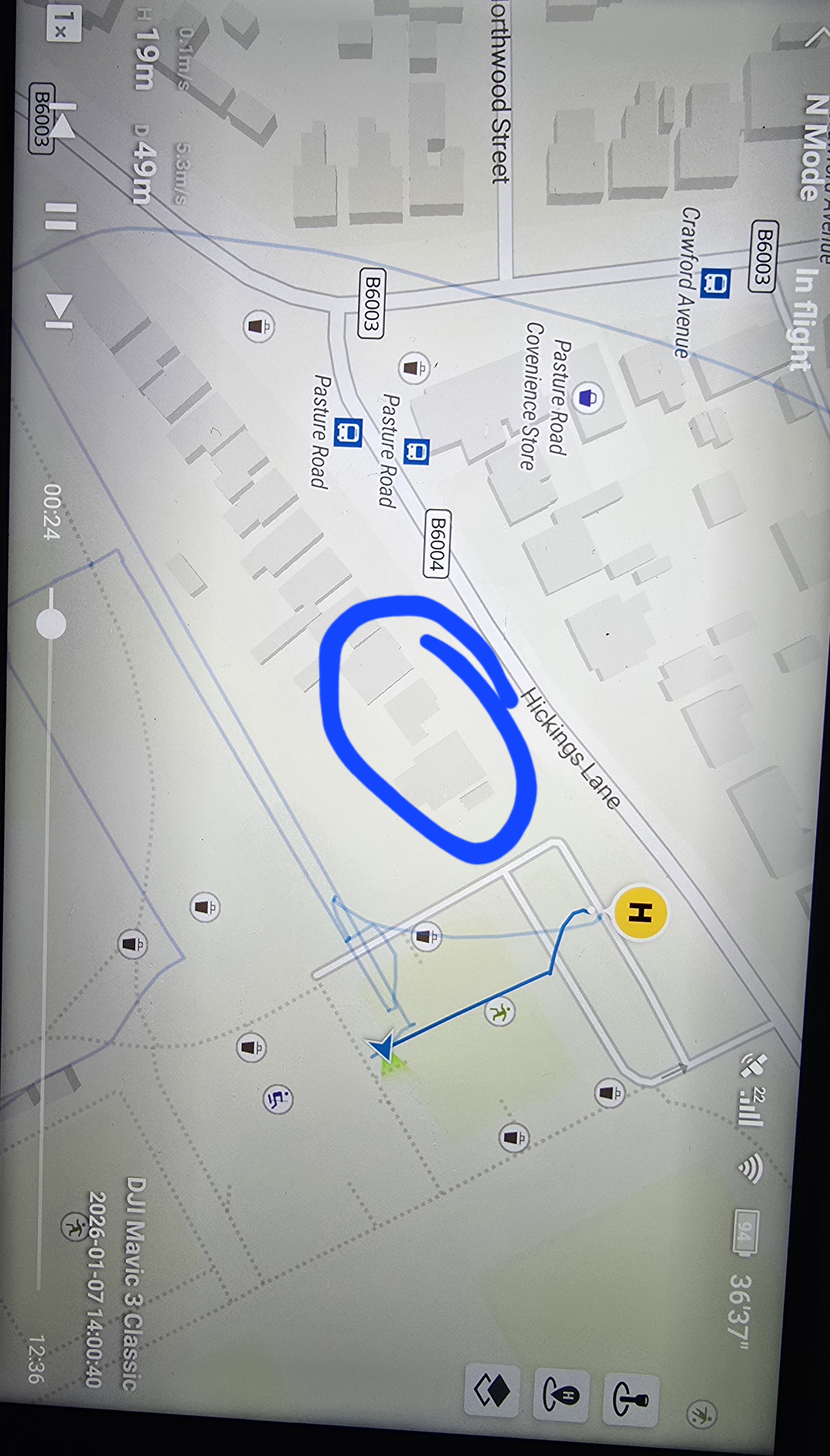 Sadly not, he started been aggressive 30 seconds prior shouting at me "told you before not to fly that fucker here’ and im like Sir this is the 1st time ive been here and never spike you you in my life and then he getting more agitated and started pulking that out so i was like i need to film an get evidence, he was then spouting just before the video of his privacy in his garden in the circle he is in 1 of those he appesred from the back end of,
