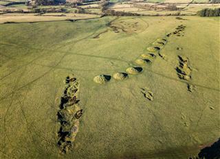 Their deliberate alignment across the limestone grassland suggests strong ritual planning, possibly linked to territorial boundaries, processional routes, or ancestral memory embedded in the landscape. Over time, many barrows were partially levelled by erosion, grazing, and later quarrying, yet their overall pattern remains remarkably legible.