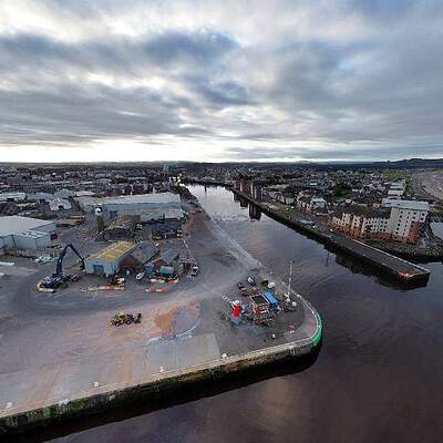 Ayr Harbour, located at the mouth of the River Ayr, is a historic port on the west coast of Scotland with a commercial focus and facilities for leisure craft. It features lighthouses on the north and south breakwaters, as well as range lights within the dock area. The harbour has a rich history tied to the movement of goods like coal, wool, and fish, as well as shipbuilding.