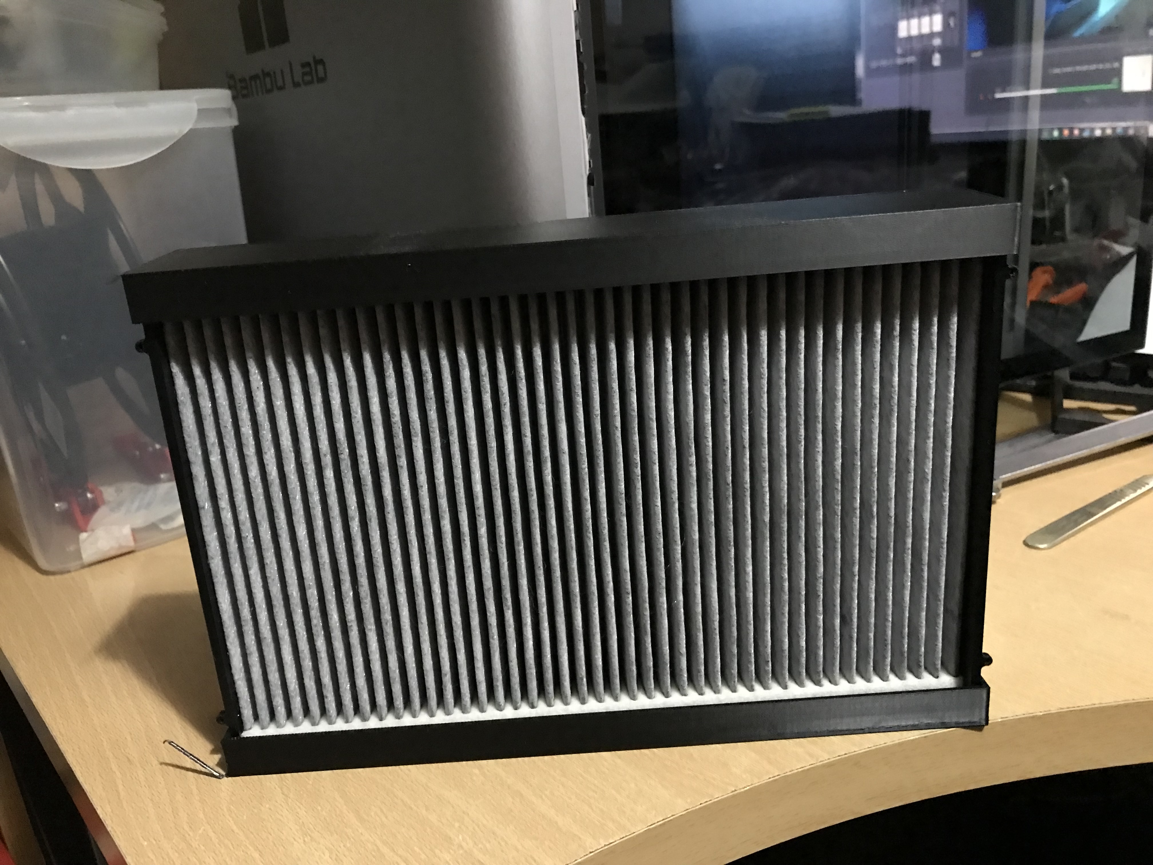 The filter arrived, now in the dimension verification stage and although the filter fits, it’s a very tight fit requiring 4mm overall, which leaves 2mm either side for the tool head .gcode.