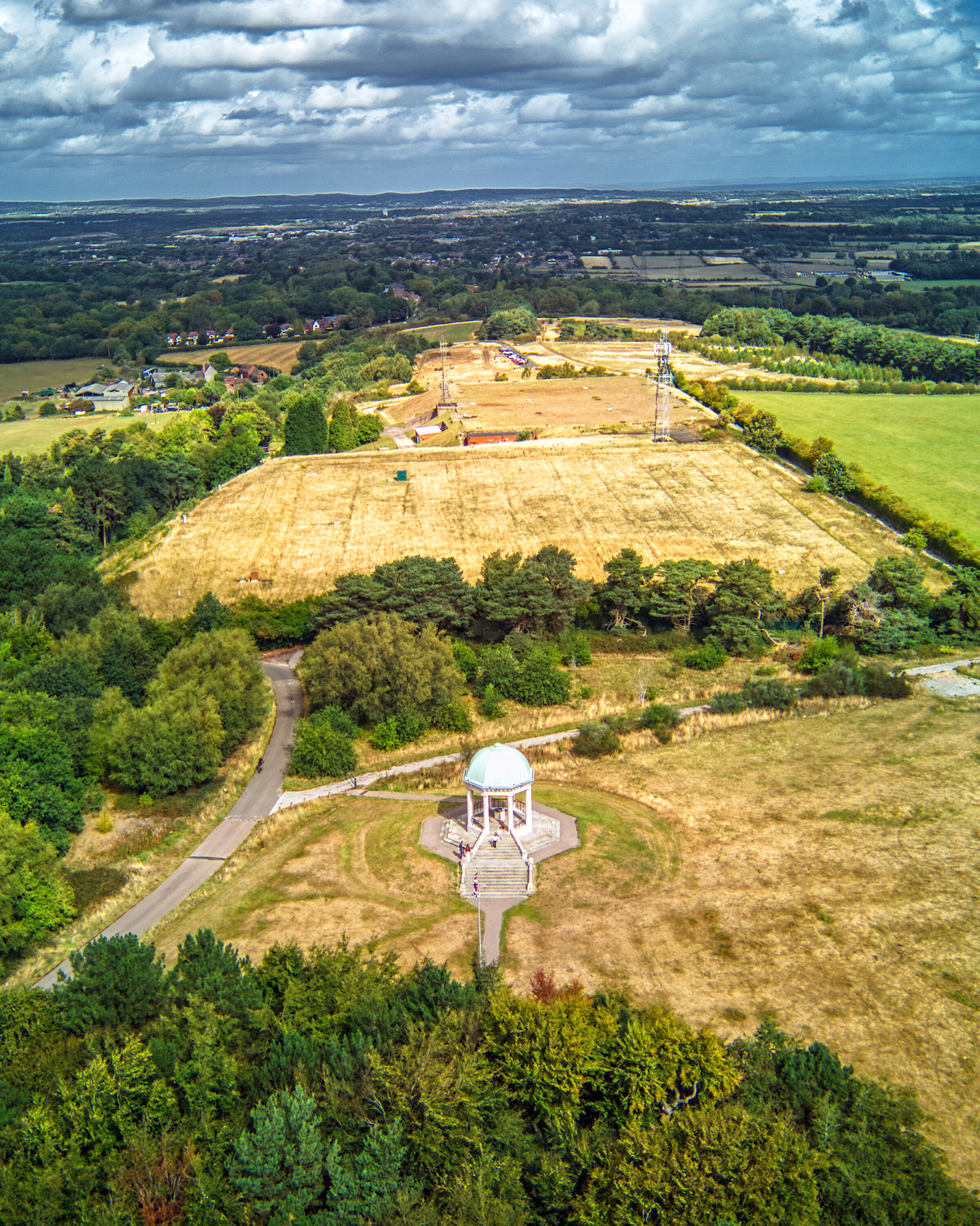 As one of the highest points in the West Midlands county, Barr Beacon has panoramic views. According to the Walsall Council website, visible landmarks include The Wrekin, Cannock Chase, the Lickey Hills, Lichfield Cathedral, Aldridge Airport, and Birmingham city centre, and at least eleven counties are visible, including Powys in Wales.
