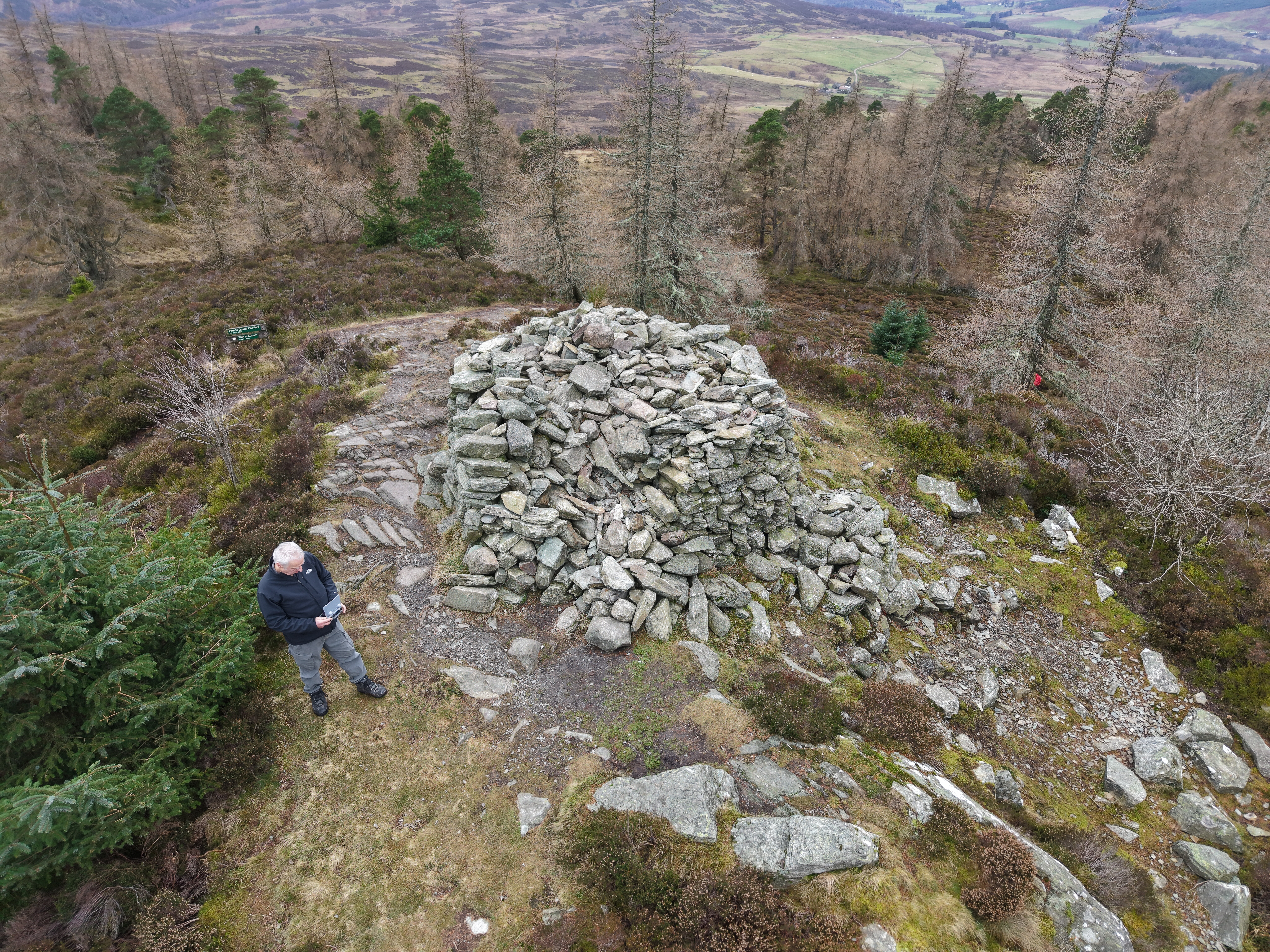 Fairly short, but somewhat steep in places, dirt/gravel paths lead up to Birnam Hill from Dunkeld/Birnam. A bit of a hike but definitely worth the views particularly with a drone. There’s a large cairn on top of the hill but strangely no OS trig’ point.