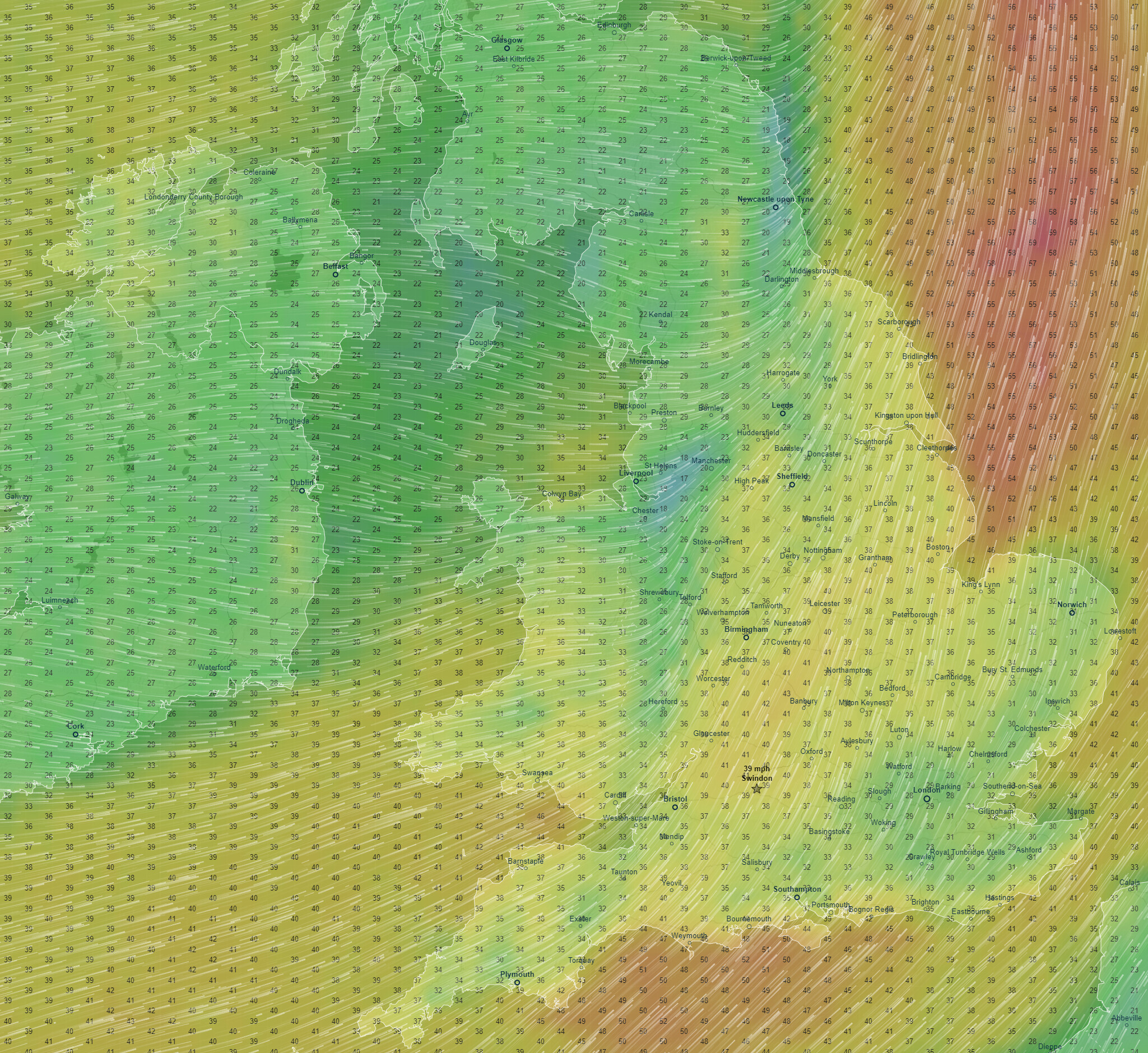 40 mph NE winds Friday 5pm, gusting to 50+ mph.