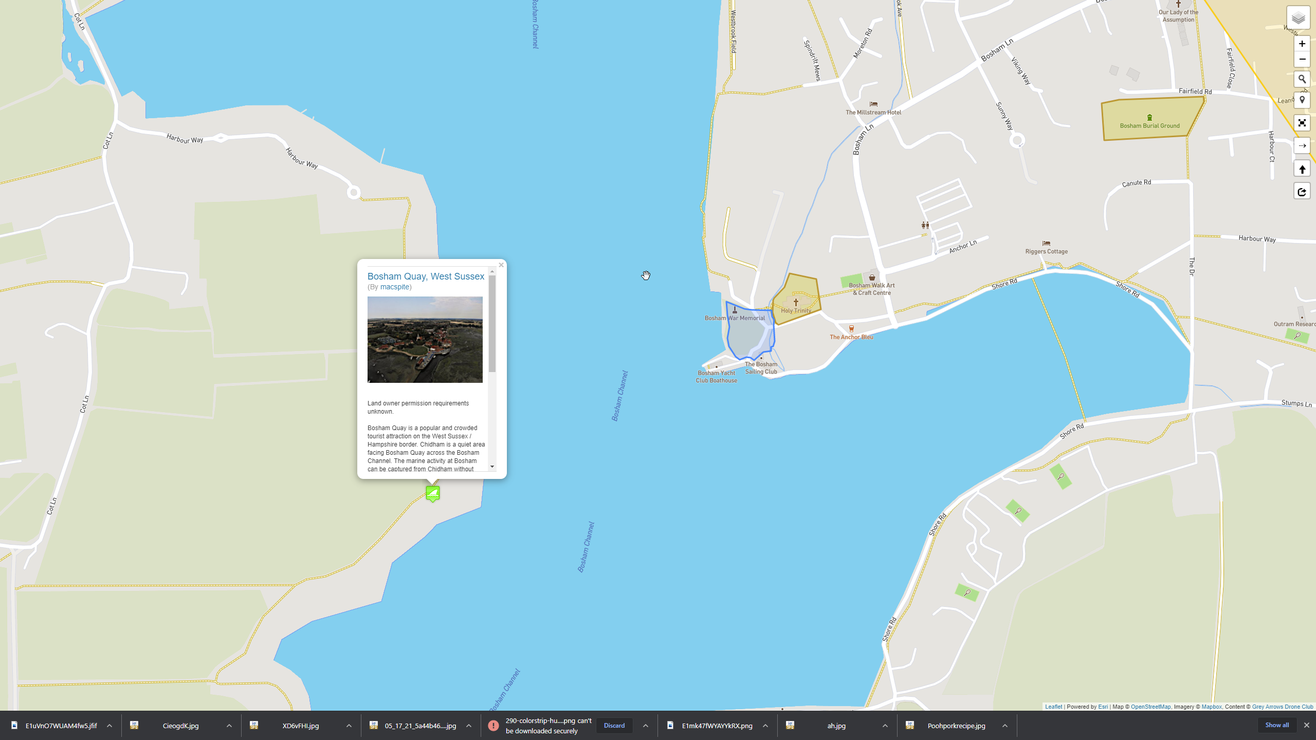 Bosham Quay is a popular and crowded tourist attraction on the West Sussex / Hampshire border. Chidham is a quiet area facing Bosham Quay across the Bosham Channel. The marine activity at Bosham can be captured from Chidham without needing to fly more than 500m from your home point.