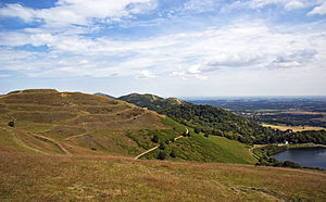 The most recognisable of all the Malvern Hills, British Camp is thought to have been the location of a hillfort dating from maybe 3,500 years ago in the Bronze Age. At a height of 338m above sea level, it offers a magnificent view of land all around and especially the primary pass through the hills at that time; Wynds Point.