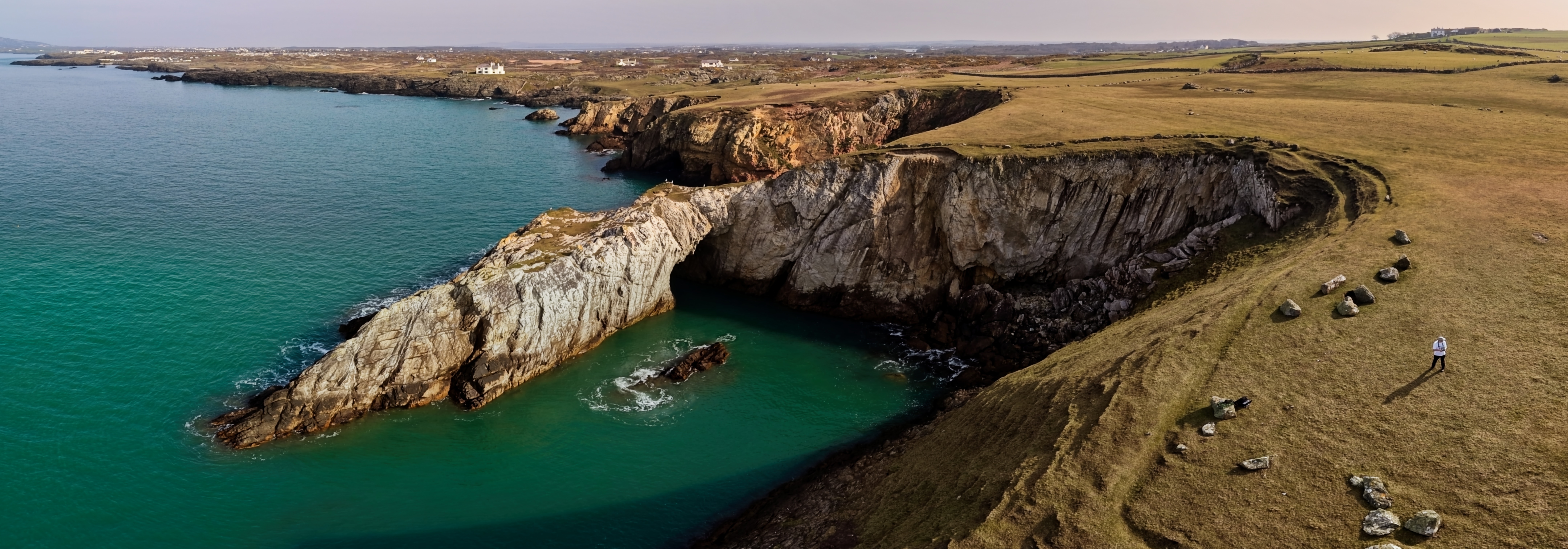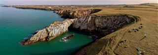 Nb - this site is less than half a mile outside RAF Valley FRZ, and is an active area for military helicopter training. When I was there I had to abandon my flight because a helicopter decided to practice landing on the neighbouring headland