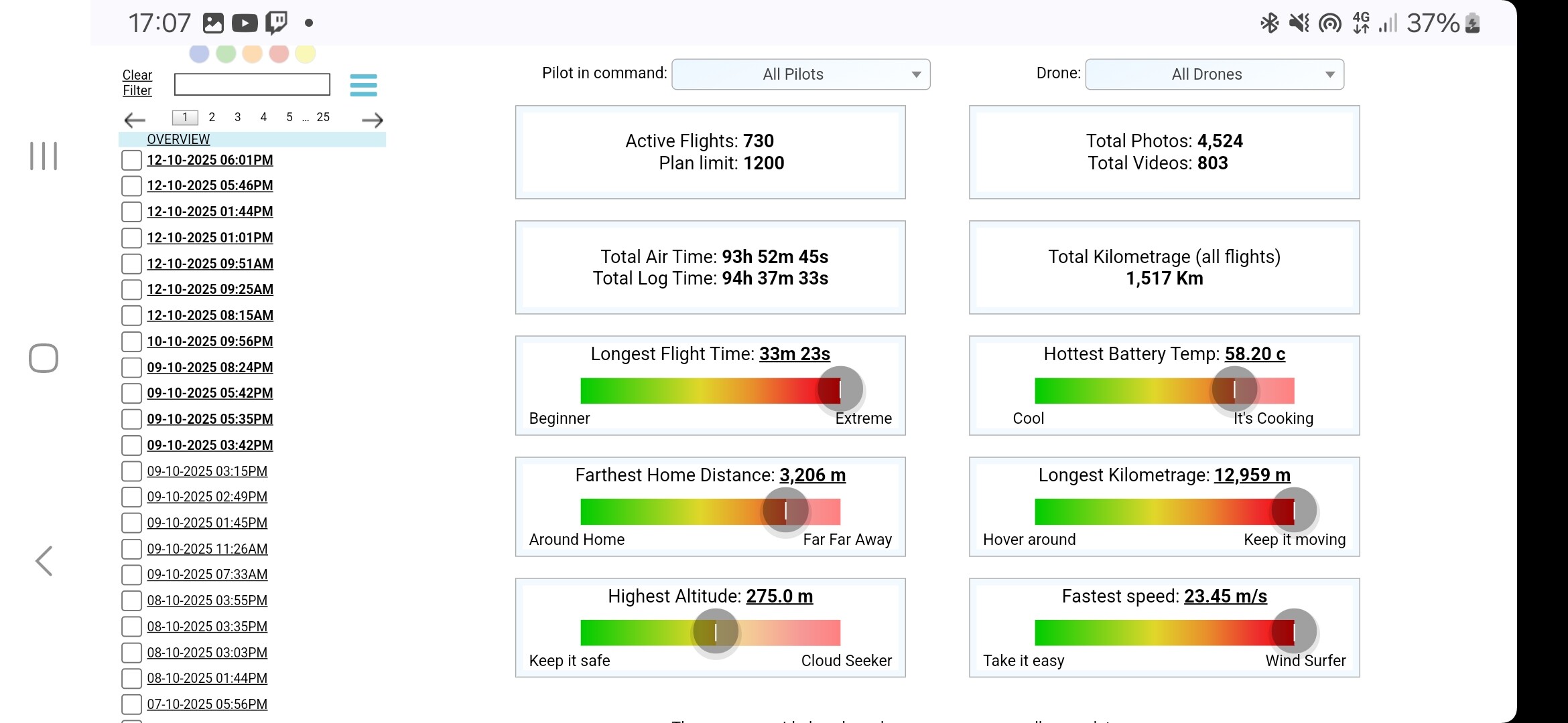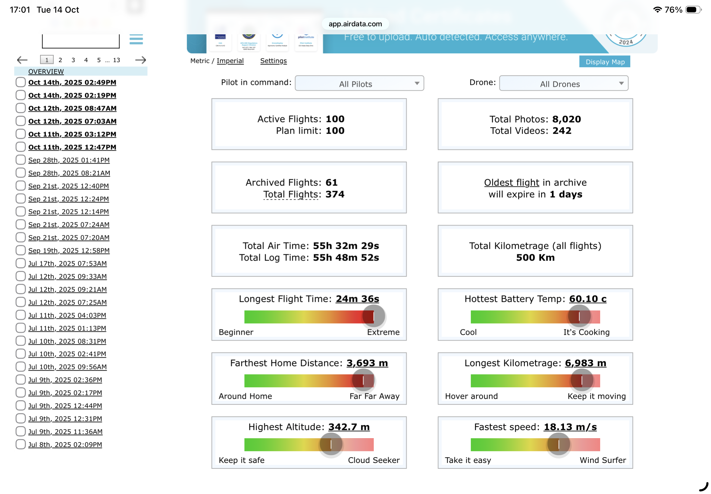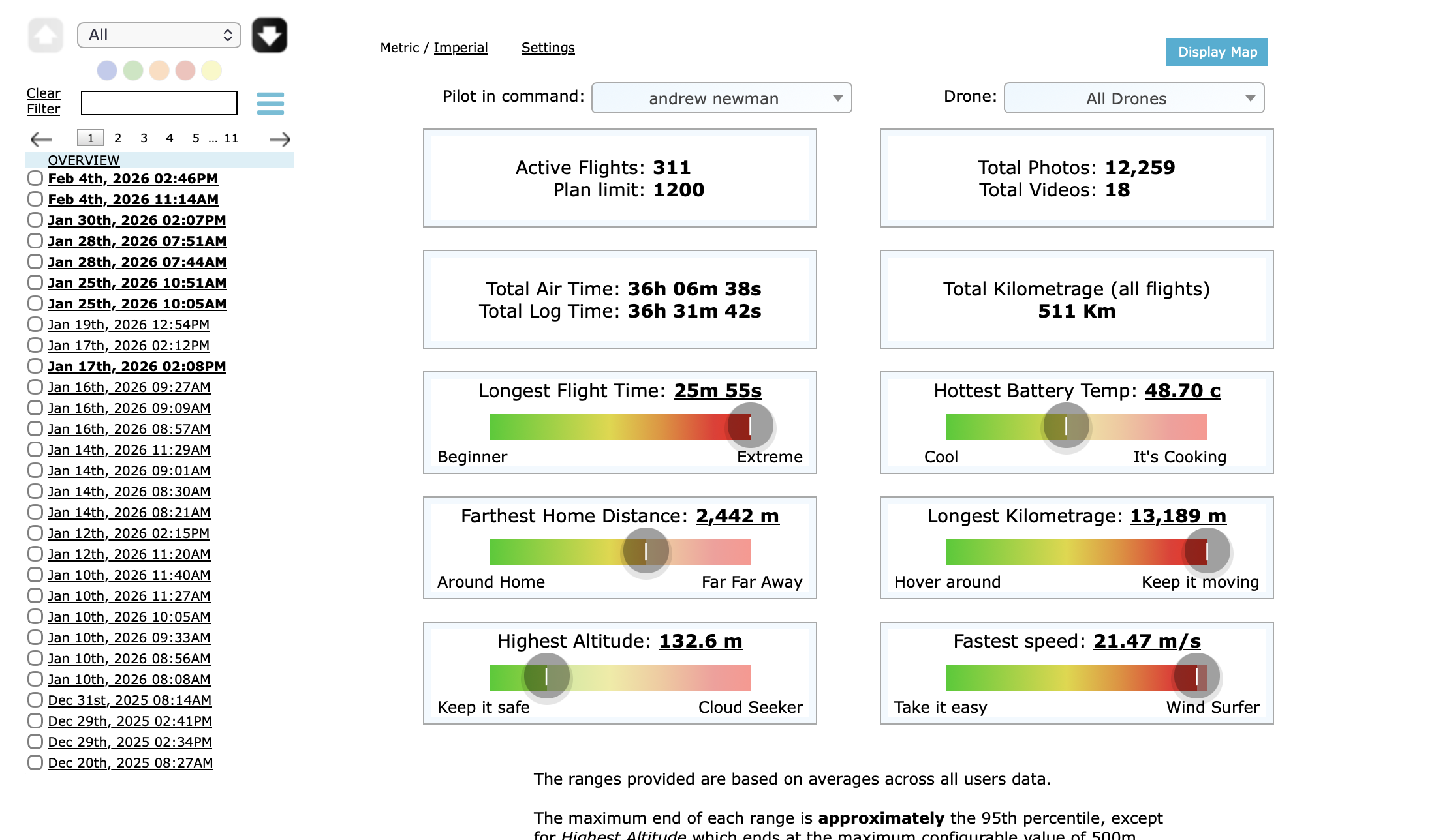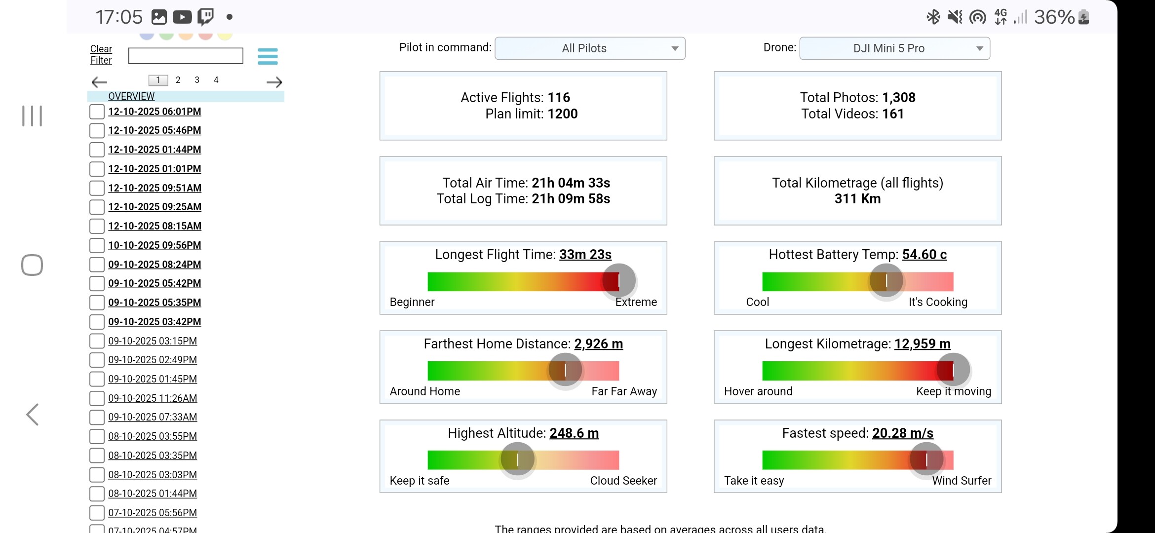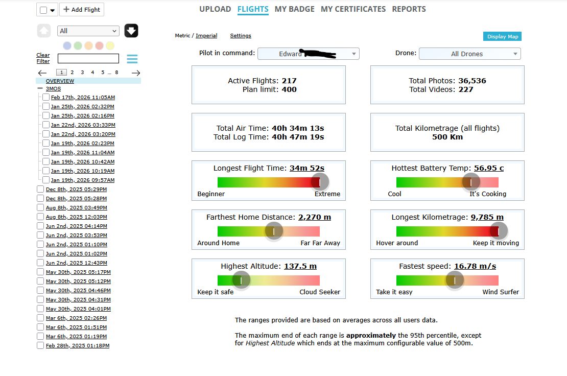 I have almost the same number of flights and flight time… but my total km since 2018 is closer to your Mini 5 Pro total!!