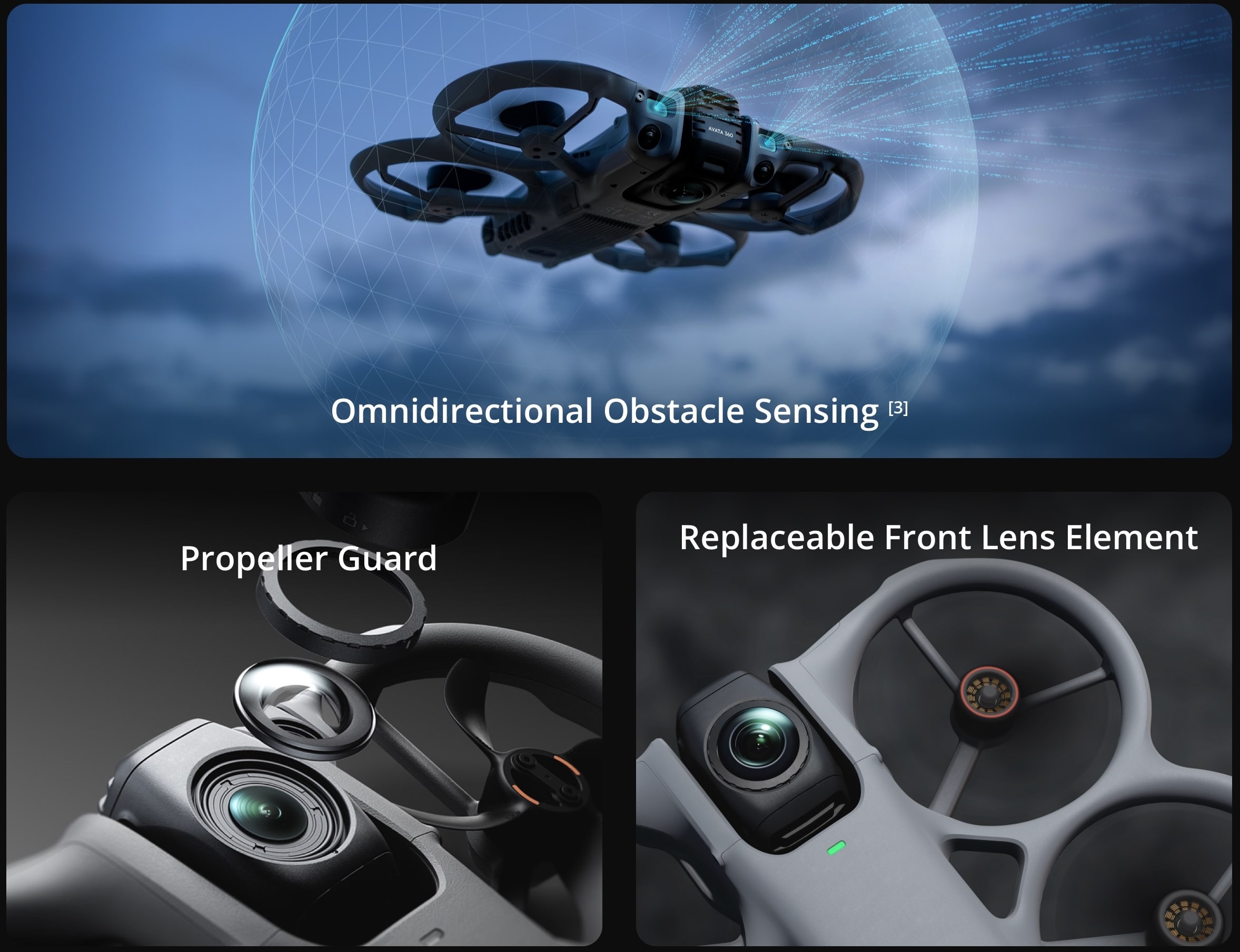 The DJI Avata 360 features 1-Inch Flagship Imaging, 8K/60fps HDR Video, Omnidirectional Obstacle Sensing for Dynamic Tracking Shots, Integrated Propeller Guard and the all important O4+ Full HD Video Transmission.