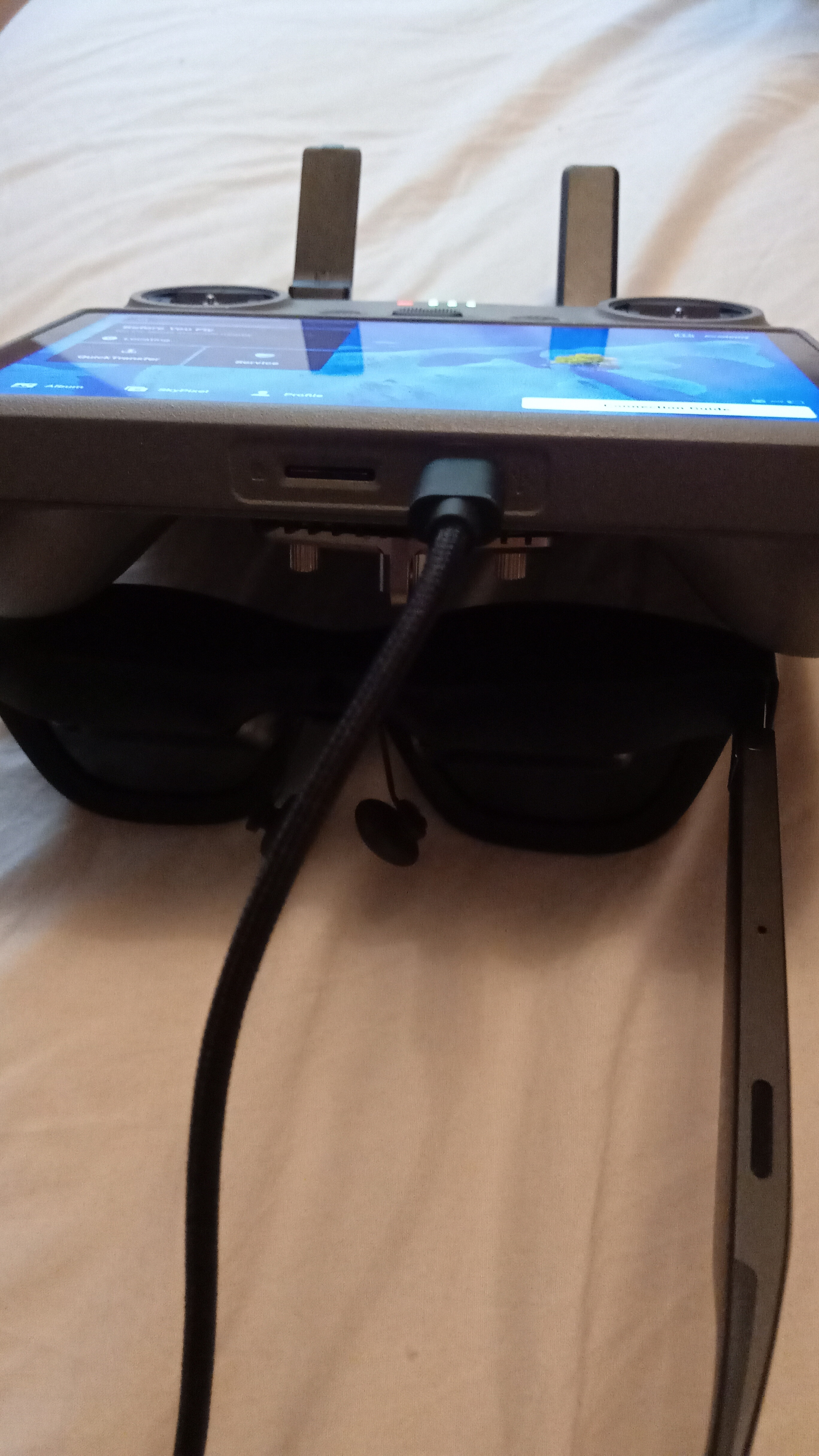 I use Xreal Air2 glasses plugged into the USB-C port on the RC2 controller that I use with my mini4, to mirror the controller screen. Great for use when the sun makes the controller screen hard to use.