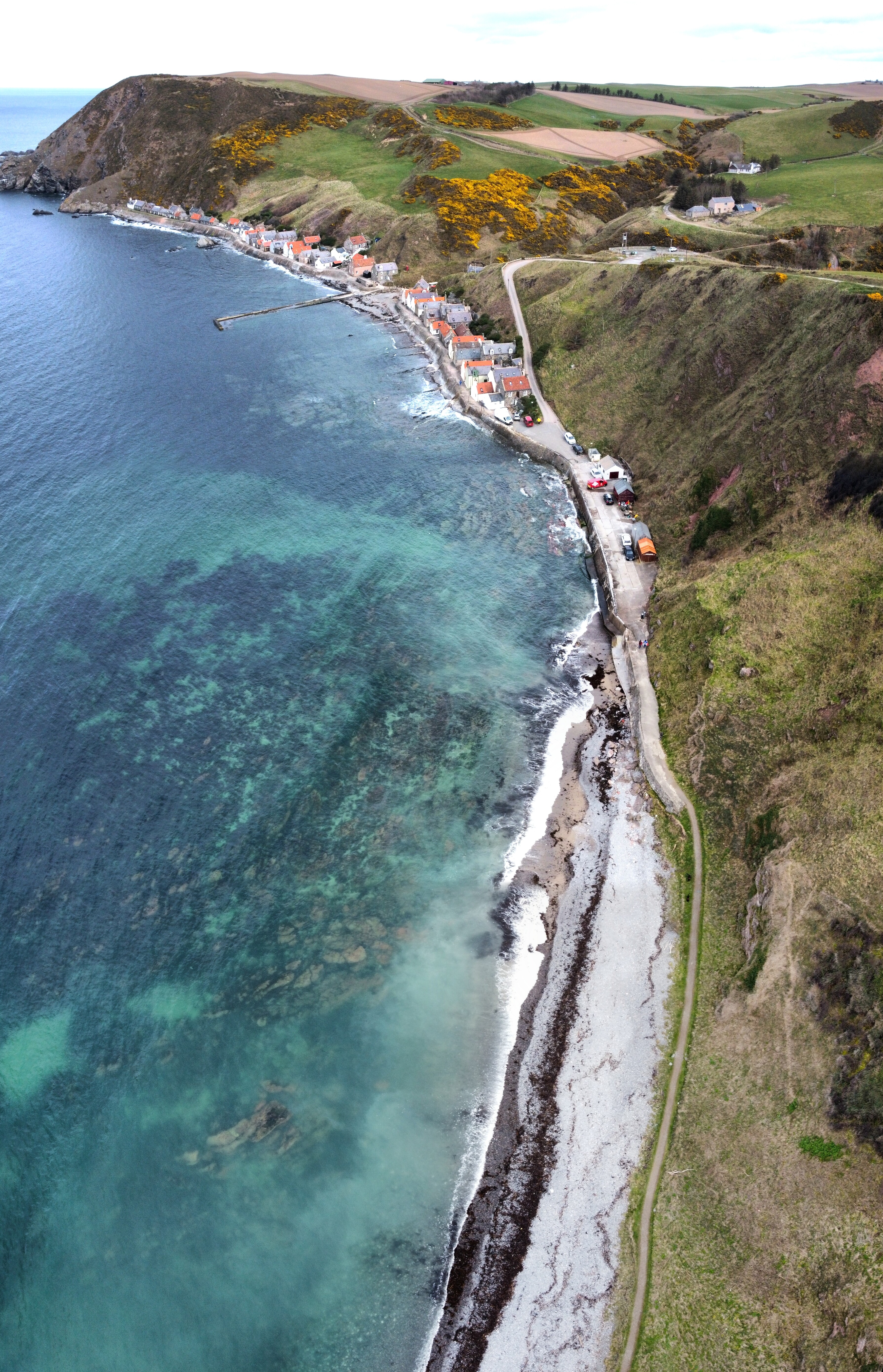 Crovie is one of a series of villages along the north coast of Aberdeenshire, all characterised by a spectacular and precipitous drive down to the shoreline, and picturesque homes along the seafront.