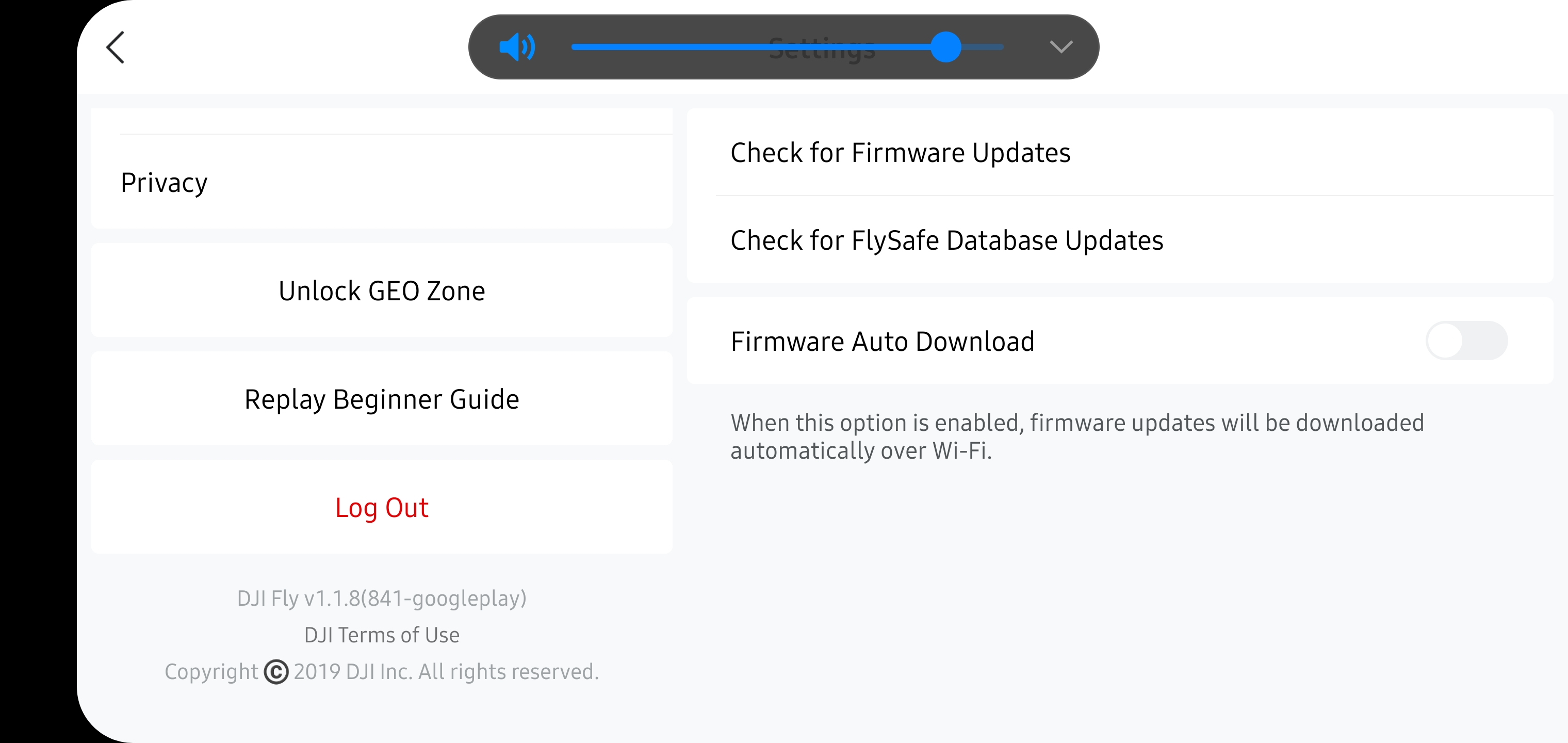 When you open DJI Fly and go to profile then settings and scroll down the left side does it say 1.1.8 there like pic below?