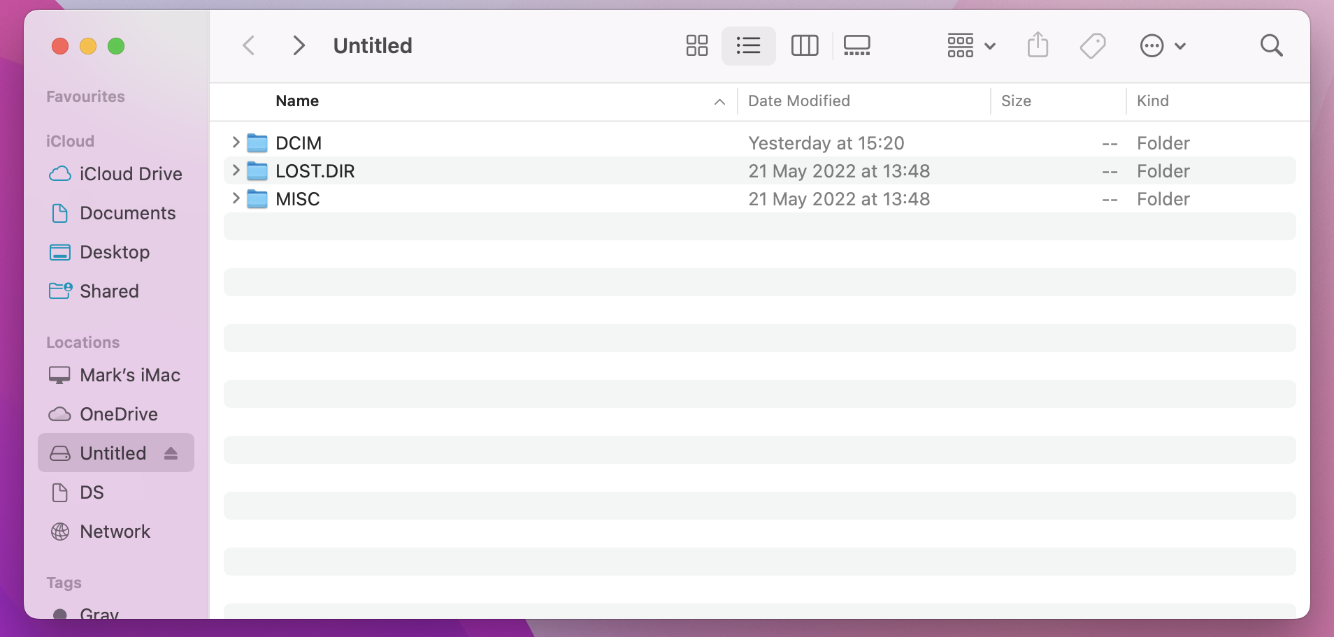 This is all I have, if I go into each of those folders DCIM has the 100 media folder, lost dir has nothing and the misc has three folders called GIS, IDX and THM?