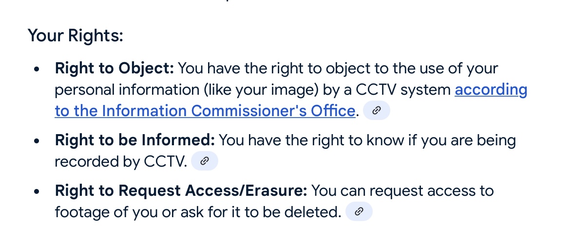Interesting point on the cctv. If they have cctv looking out onto a public footpath that does seem a bit off. I didn’t see any signs. Will bear that in mind.