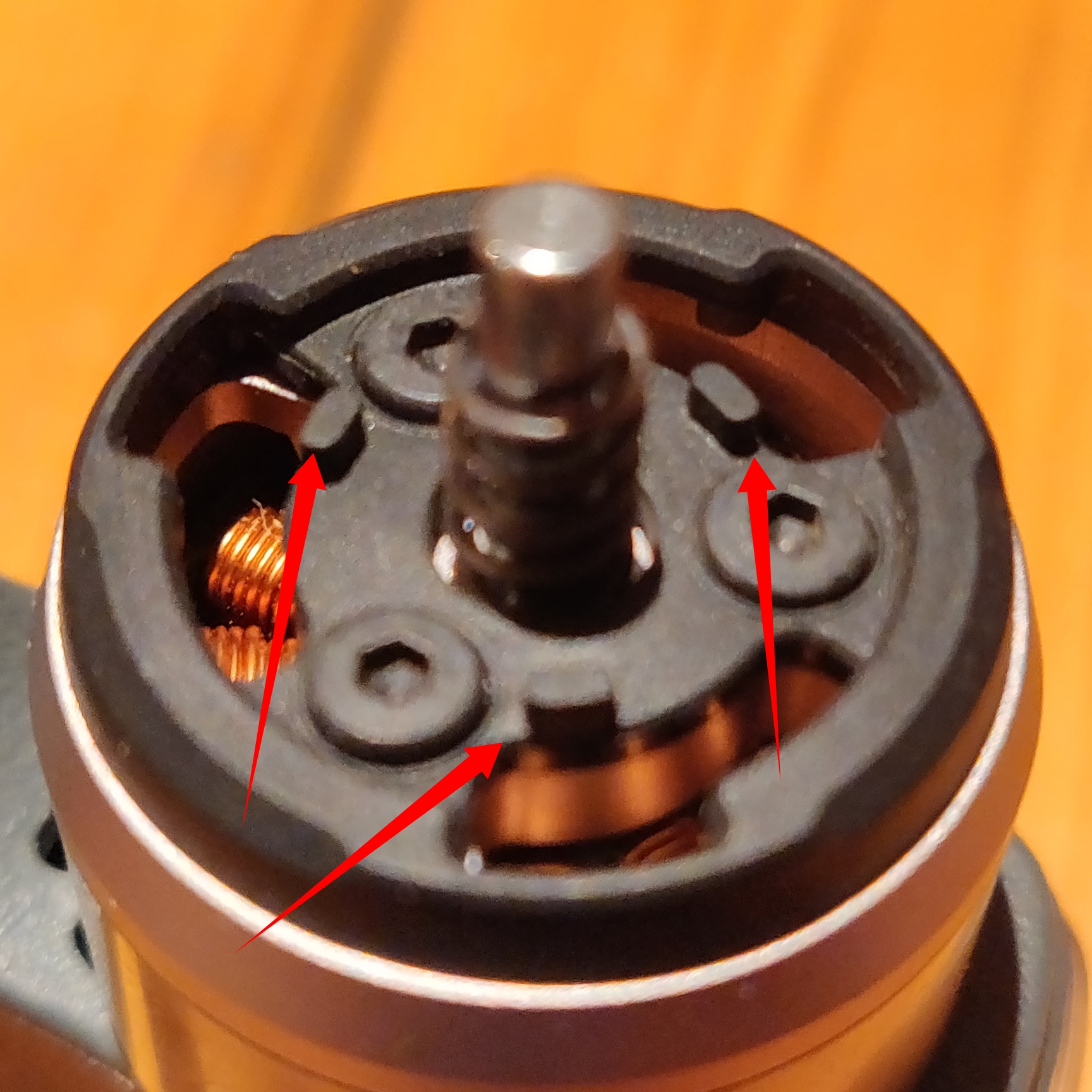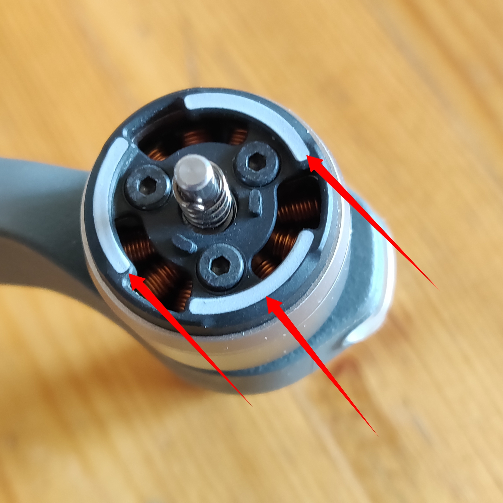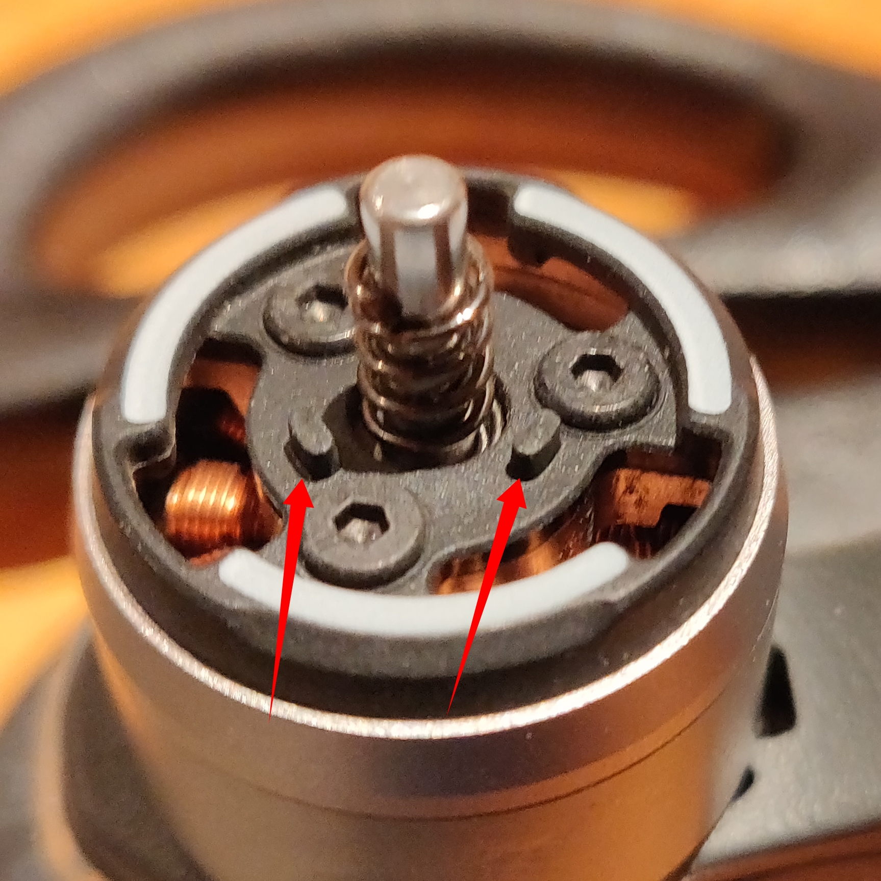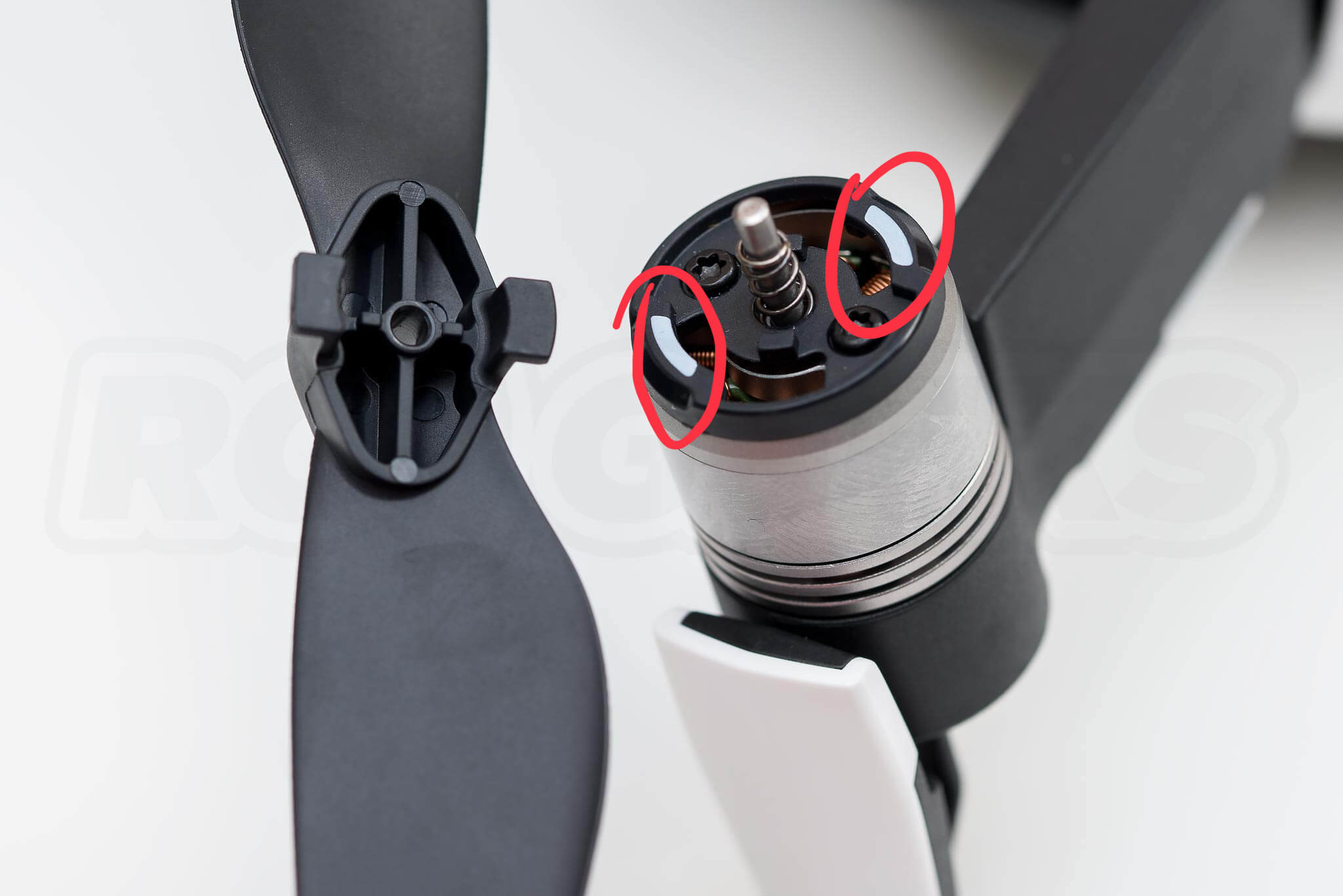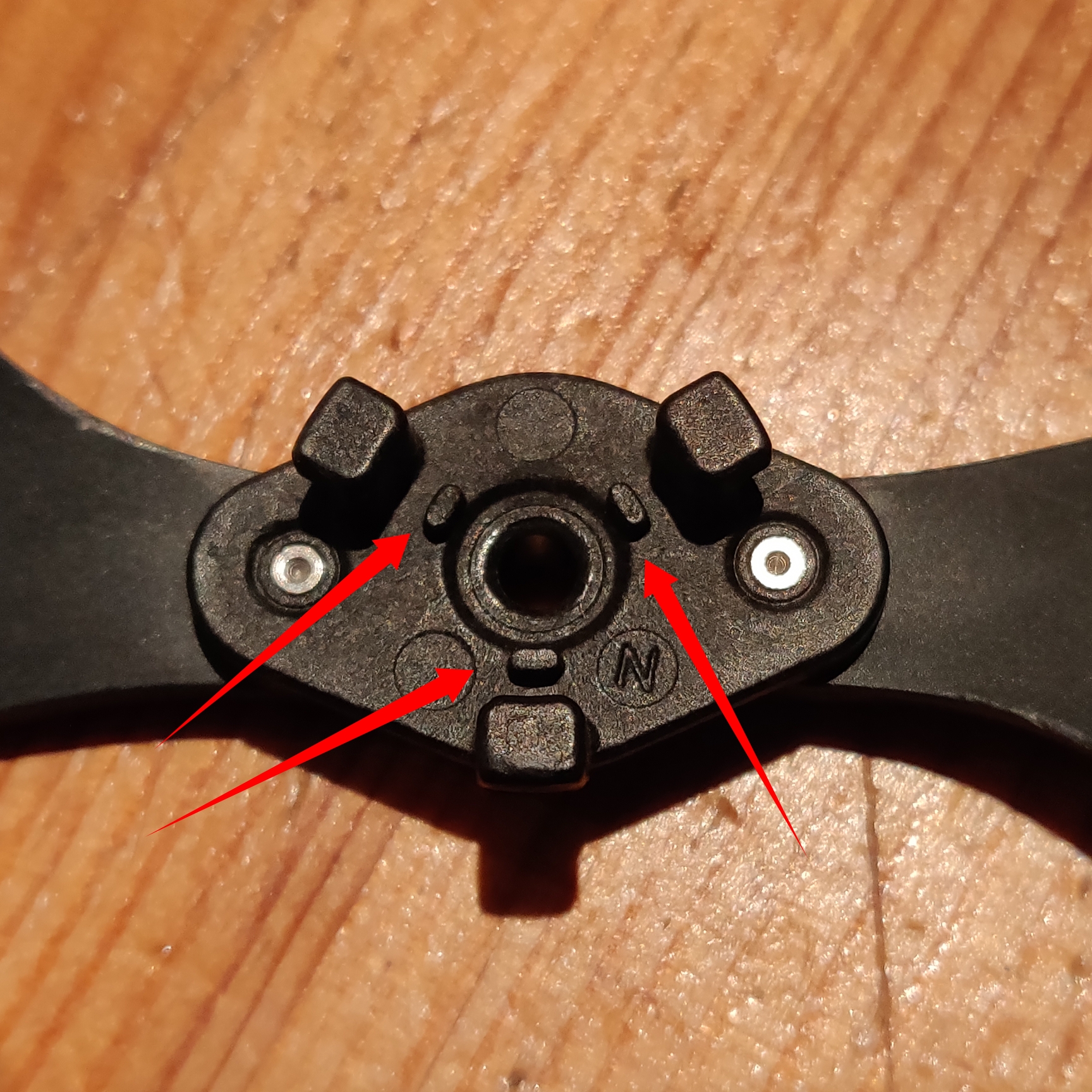 And the props are marked, too, one with a white ring near the centre that goes with the motor with the white markings.