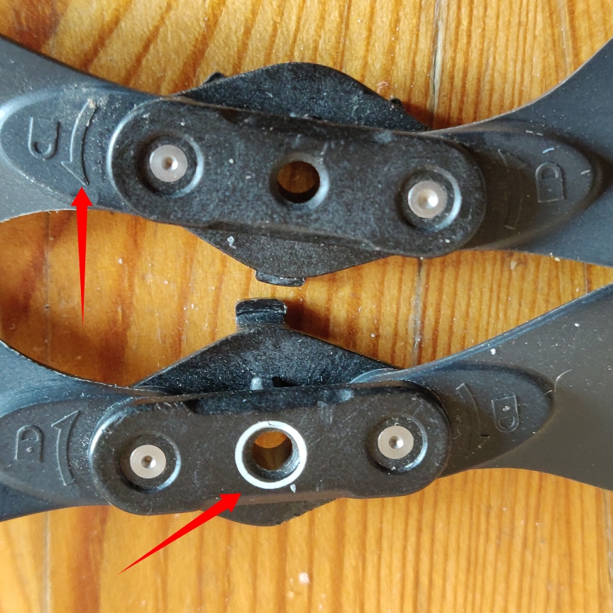 Just had my MA out to have a look, the props don’t lock into place if you put them on the wrong motor, altho I can’t see what stops them locking into place