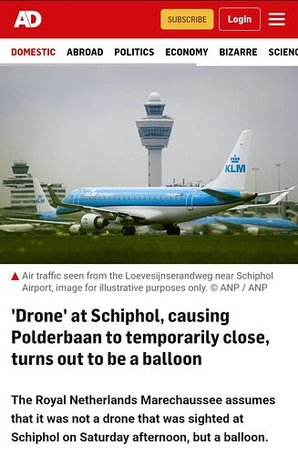 Drone It was a Ballon over Amsterdam’s Schiphol Airport leads to runway closure