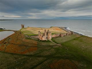 Dunstanburgh Castle is a 14th-century fortification on the coast of Northumberland in northern England, between the villages of Craster and Embleton.