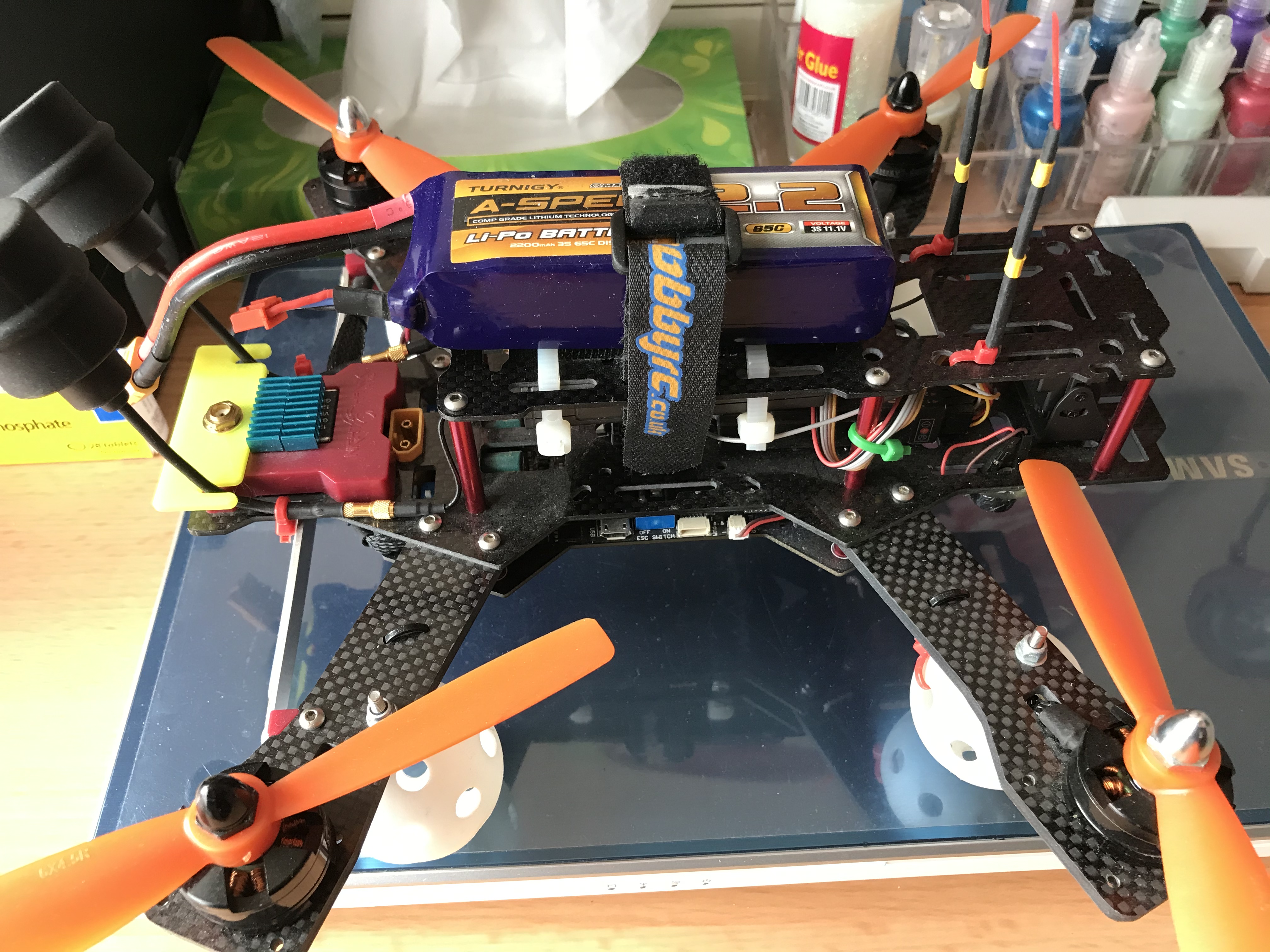 Some spare props and offset motor mount will be included.