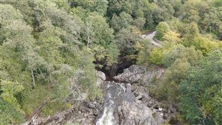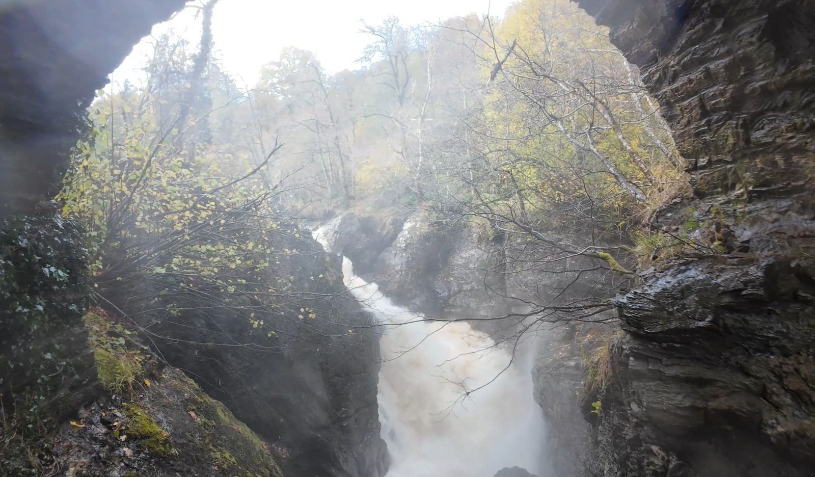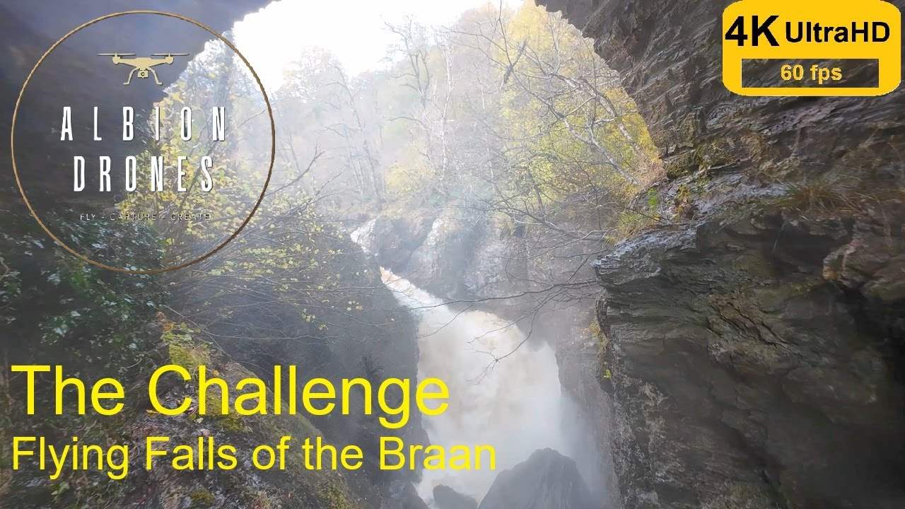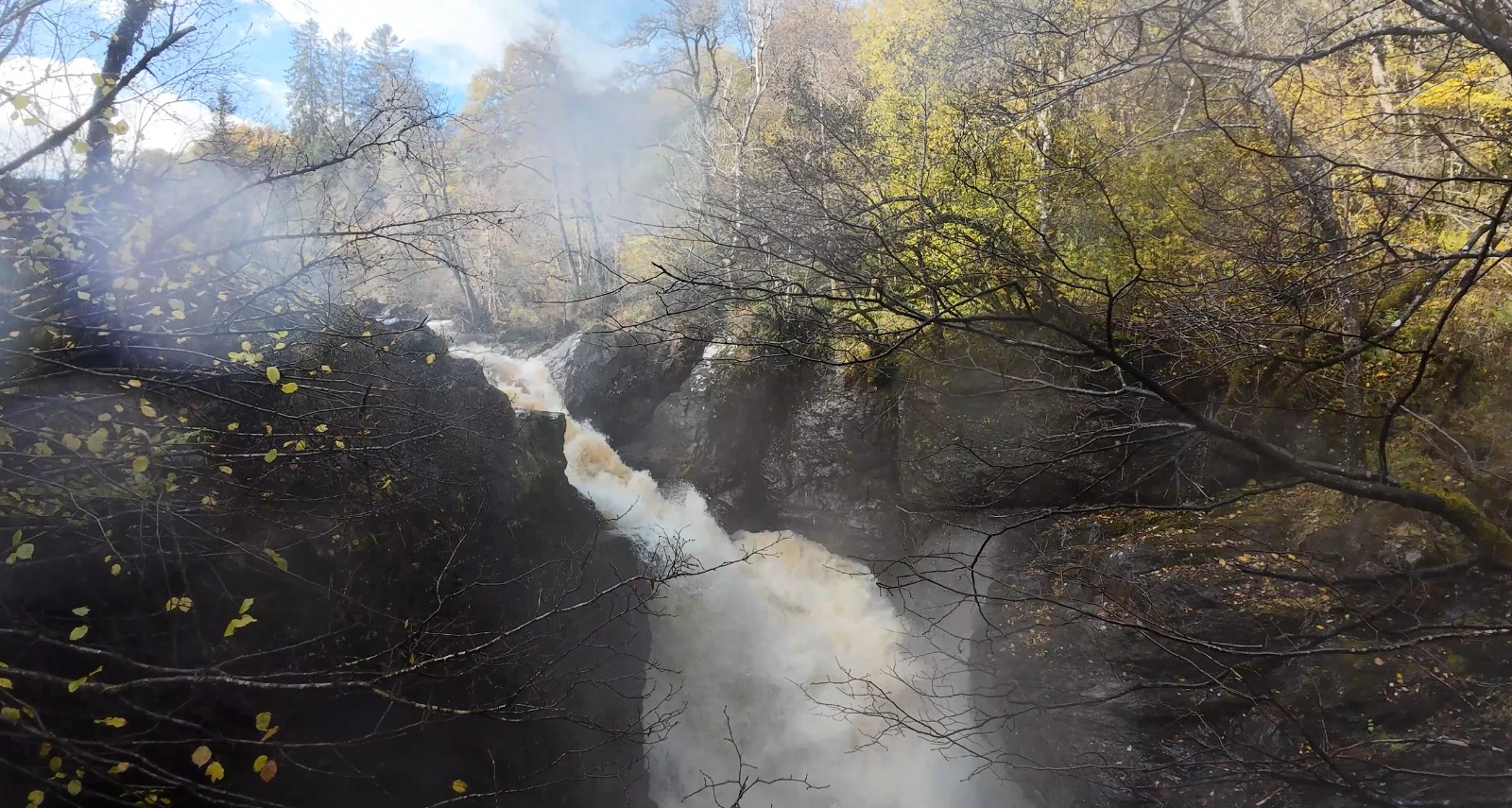 Perhaps not the best conditions to fly, but the powerful Falls of the Braan in Autumn were just too good to miss, and despite the spray and uncertain wind shear in the gorge, it just had to be done!