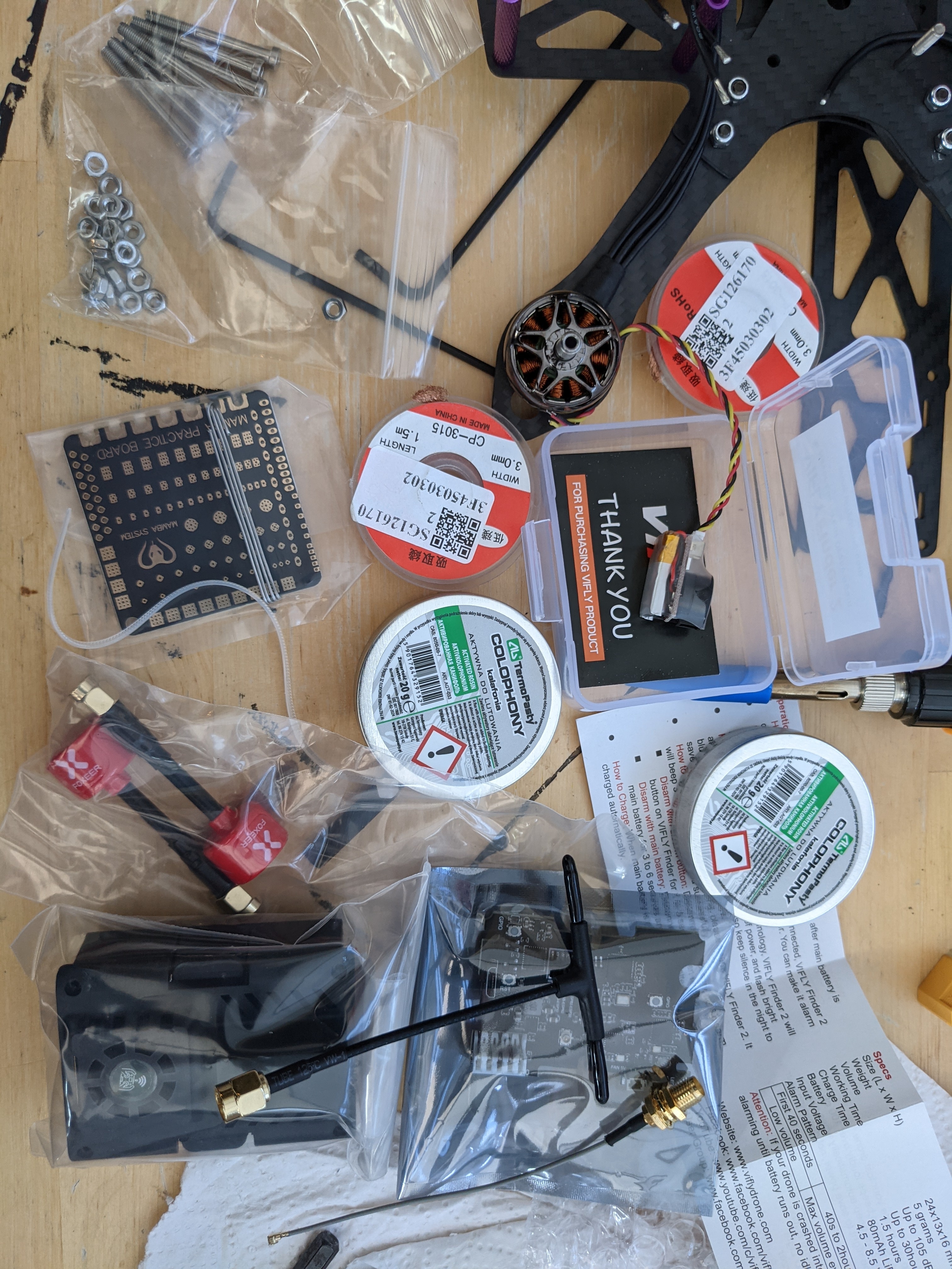 Every day like Christmas at the moment … The correct ELRS module arrived, some antenna (although idiot me got the wrong connector, though will fit me goggles), some solder wick and flux and the soldering practice board. Wooohoo. Oh yeah and the super buzzer and the wrong screws damn!