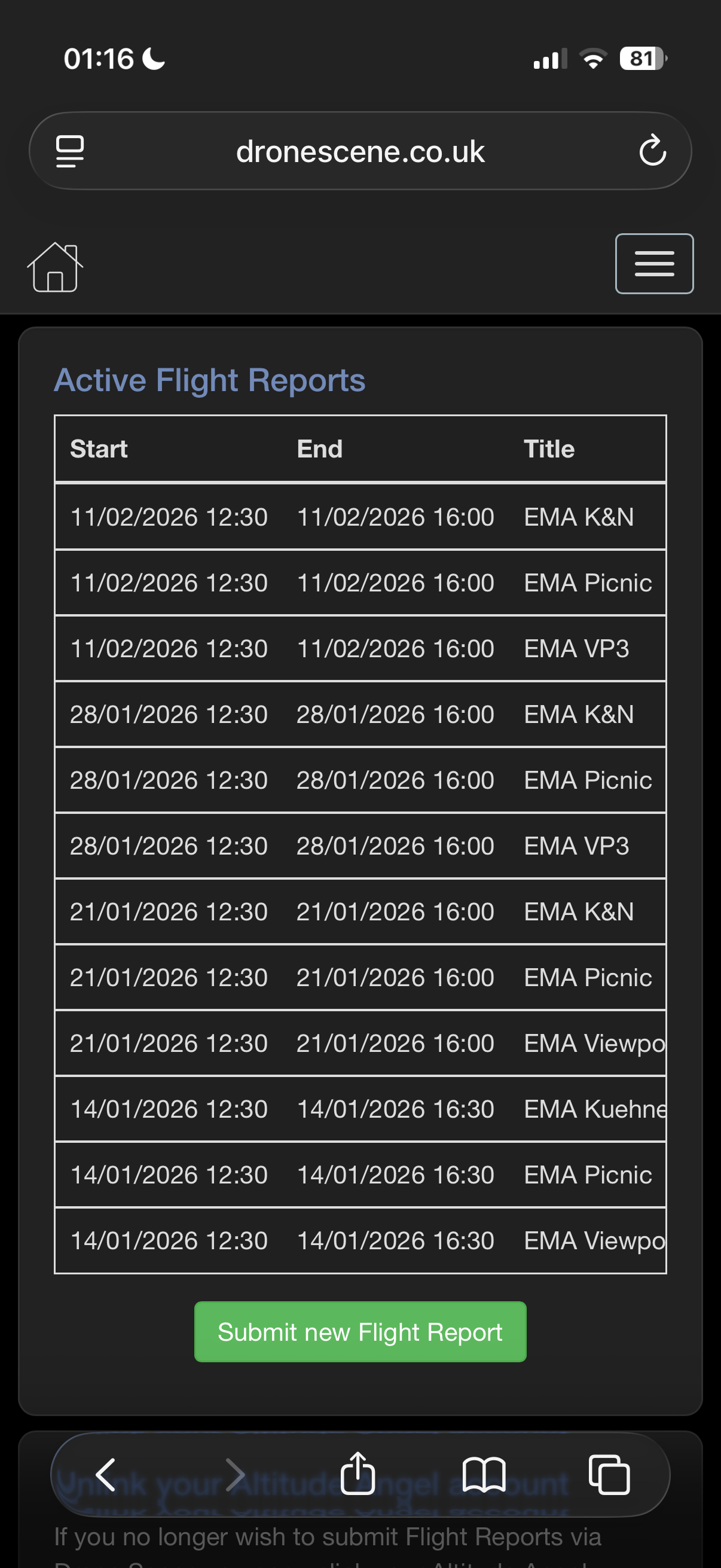 If it helps, while your Flight Reports section maintains a list of your planned flights throughout the year, the Drone Scene map only shows flights starting within the next 7 days so the map stays uncluttered and allows people to focus on airspace events in the near future, rather than those taking place much later in the year. They’ll automatically appear on the map nearer to the start time.