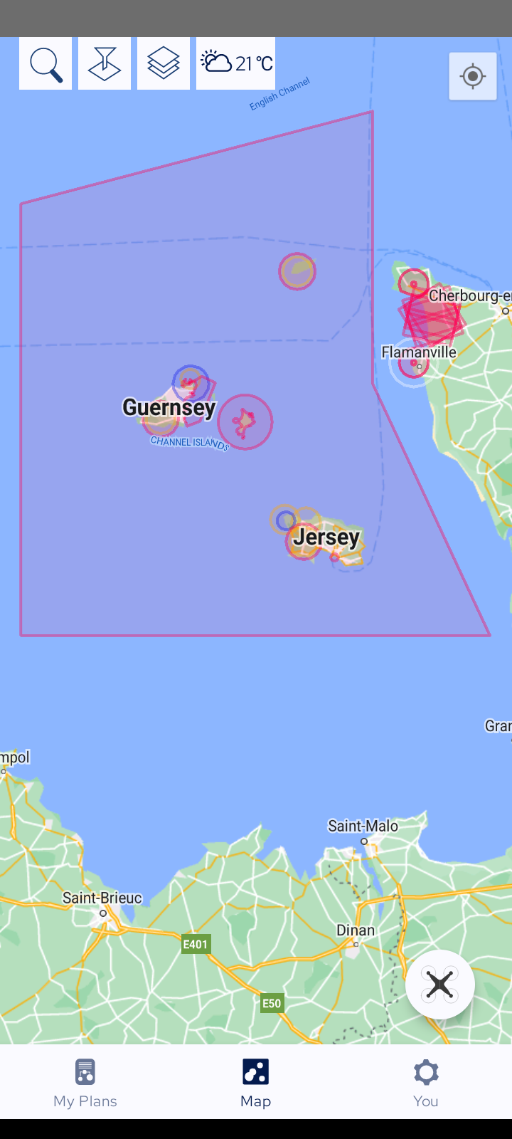 I have read the drone codes to both islands which say flying is restricted to 120m, as expected. But Drone Assist app is saying that there is a large area in the Channel, which covers the whole of the channel Islands, that restricts drones to 50m.