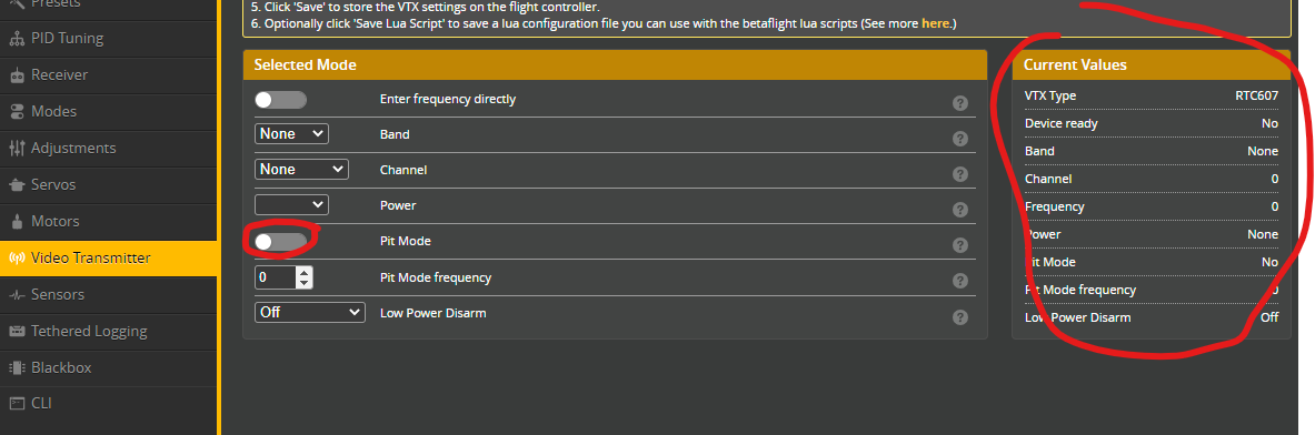 Loads to remember. You can check VTX power state on the VTX tab, and details on the right on what it supports, etc (my screenshot just virtual mode, i.e. no quad connected)