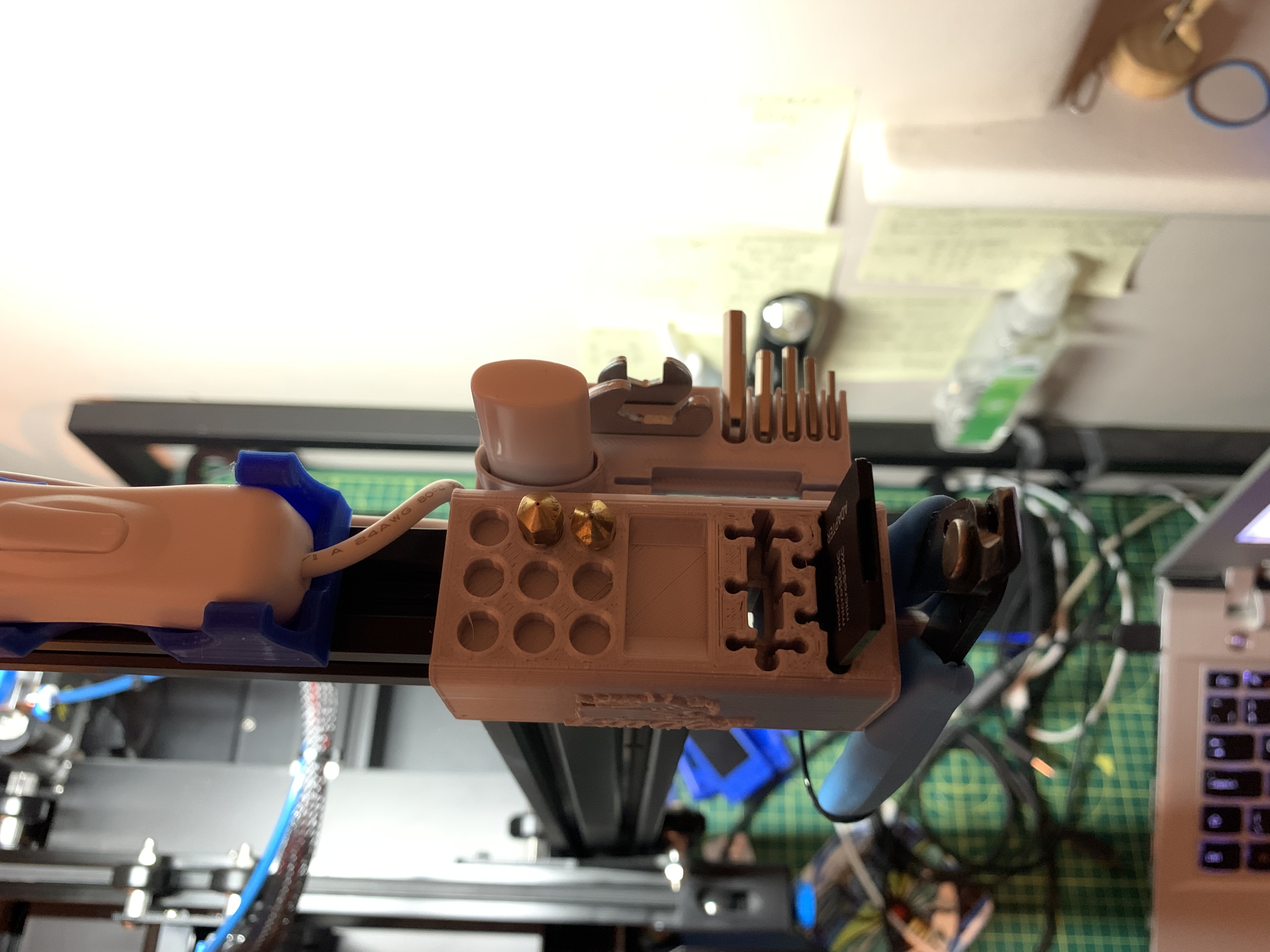 if its the upgrade I’m thinking it is, 5h 20m sounds about right for an ender 3. it also requires supports. it is the tool holder that attaches to the top bar?