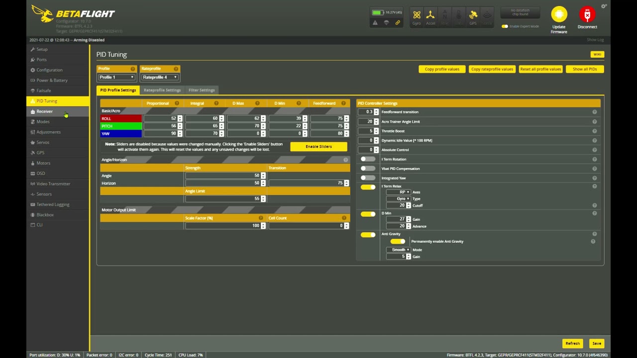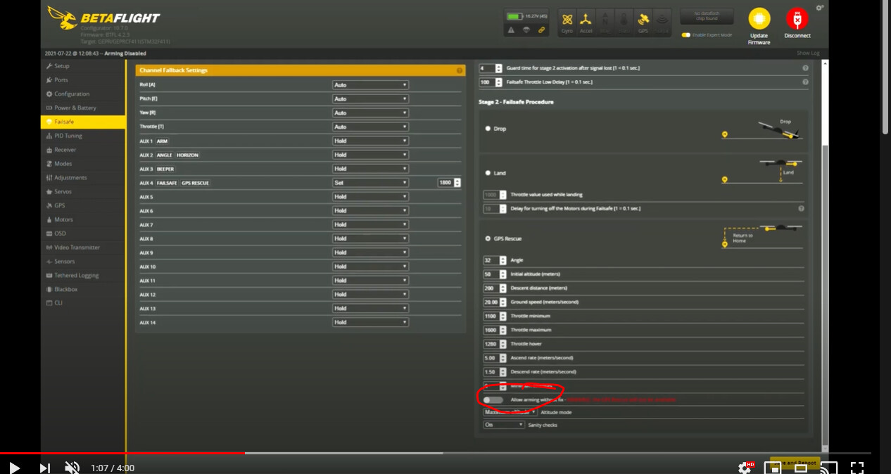 Everything looks to be behaving as I might expect. I also cross-referenced it with my Nanohawk setup to check the behaviour and they’re basically the same. The only difference is that the Croc seems to not want to arm. I’ve checked switch and gimbal (throttle) positions.