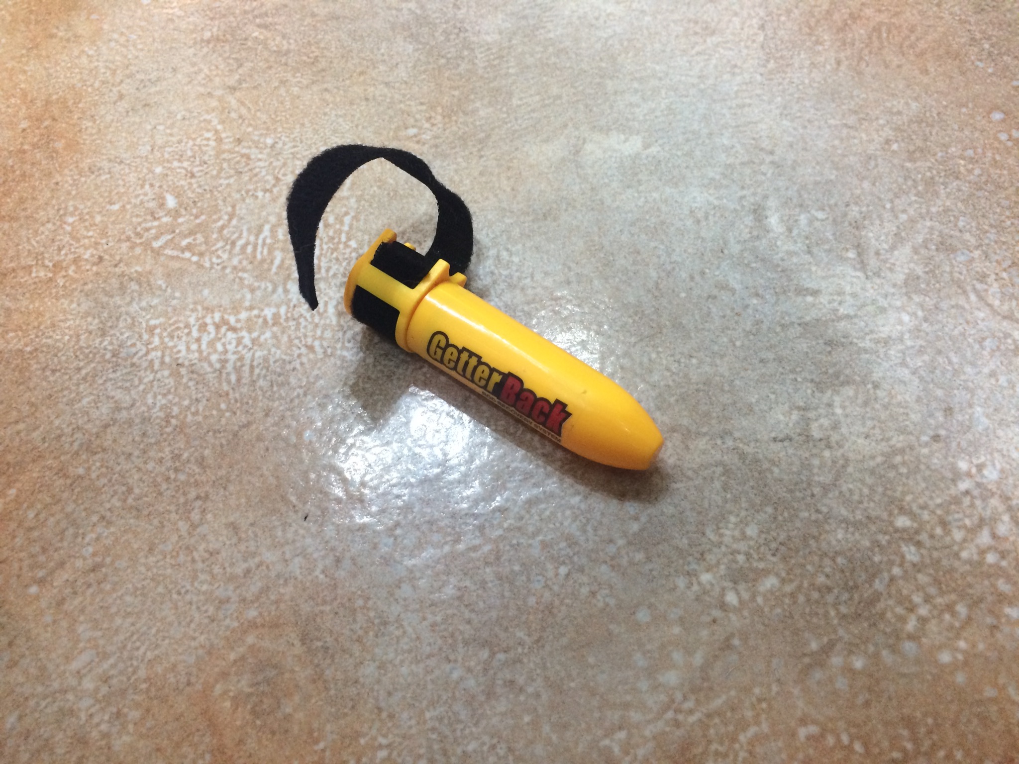 When submerged in water, the top part of the device automatically detaches and floats to the top, attached to a 100ft kevlar line.