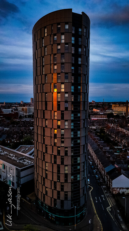 In second place was the person who came second in the main part of the competition Jason @Acedrone with an image of Leicester student accommodation The Summit at sundown
