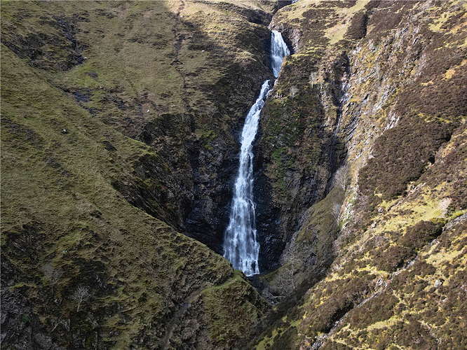 Only thing is they say no drones policy between 1st April and 31st July as it can be busy with people walking. Flying at other times by permission of NTS. However it is very open countryside all around so you would be able to pick an off-site TOAL. When it is windy you can get turbulence if you fly right into the waterfall gorge. There are plenty of possible take off points on the site and if you are fit you can walk up the steep path to Loch Skene at the top. Pick a good take off point halfway up and you will get both the waterfall and the Loch.