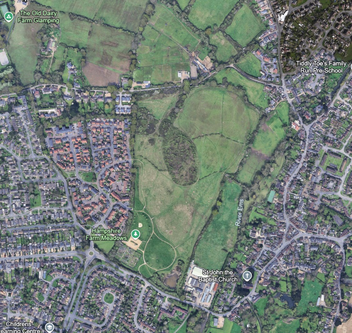 Although this site is outside of the Airport Yellow Zone, it is nevertheless in the flight path of the airport with x1 runaway actually facing Hampshire Farm Meadows.