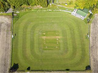 On the edge of the interesting village of Hollingbourne in Kent the cricket ground is completely surrounded by agricultural fields.