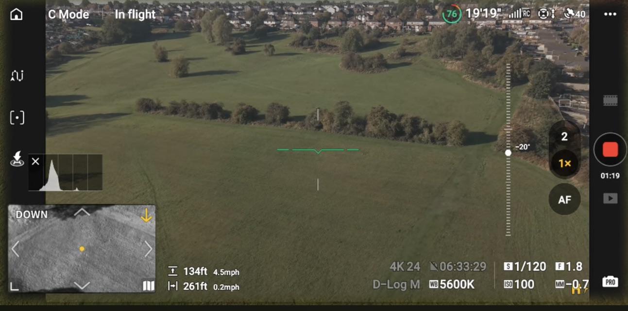Mini 5 Pro remote controller screen is a horizon reference line (level indicator).