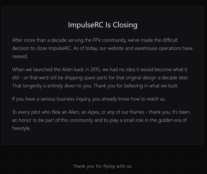 In all seriousness, its a shame to see any supplier fold.