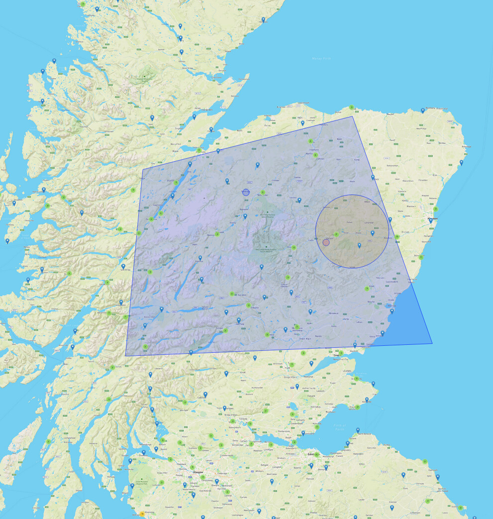 Rather large part of Scotland being covered for what looks like Exercise Talon Highlander