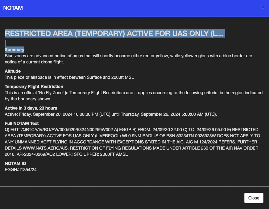 To do that I use a 4k screen … but set up the location on a much smaller window, zoom out to the limit of NOTAM being visible, then click on Full Screen and it displays the data already loaded.