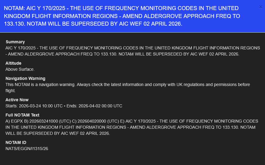 Had some confusion last week when in Cambridgeshire and an active NOTAM warning popped up on the Drone Scene app. I called the airfield asking whether I could fly to which they “couldn’t advise” one way or the other. Both confusing and annoying!