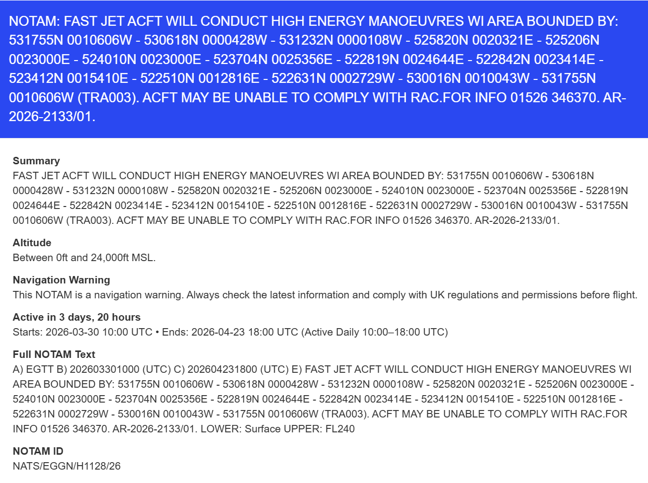 I’ve got a commercial job next Wednesday in Peterborough and the following NOTAM warning has appeared for the area: