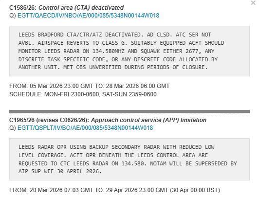 It’s essentially telling you that the old Leeds Bradford CTA is being reverted back to Class G airspace.