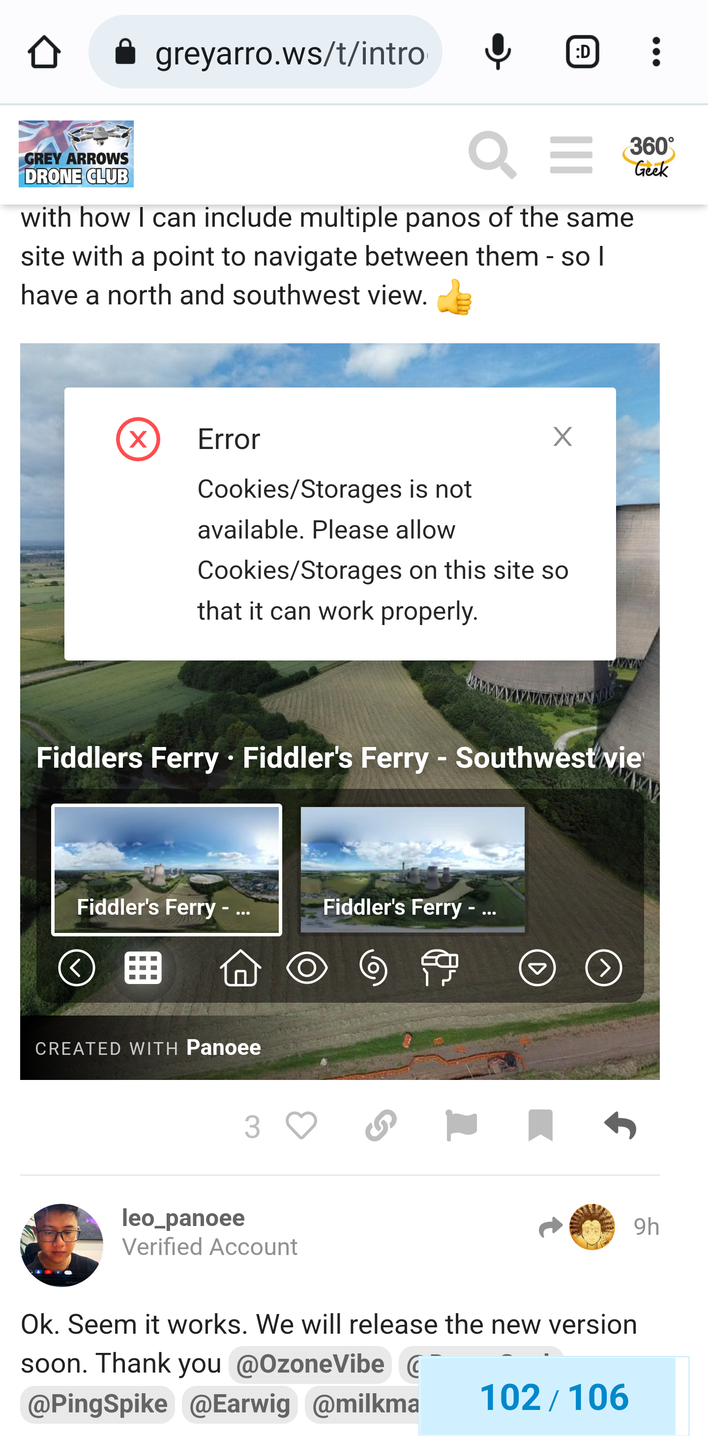 Just tried it with my Fiddler’s Ferry photography from a little over a month ago and quite impressed with how I can include multiple panos of the same site with a point to navigate between them - so I have a north and southwest view. ![]()