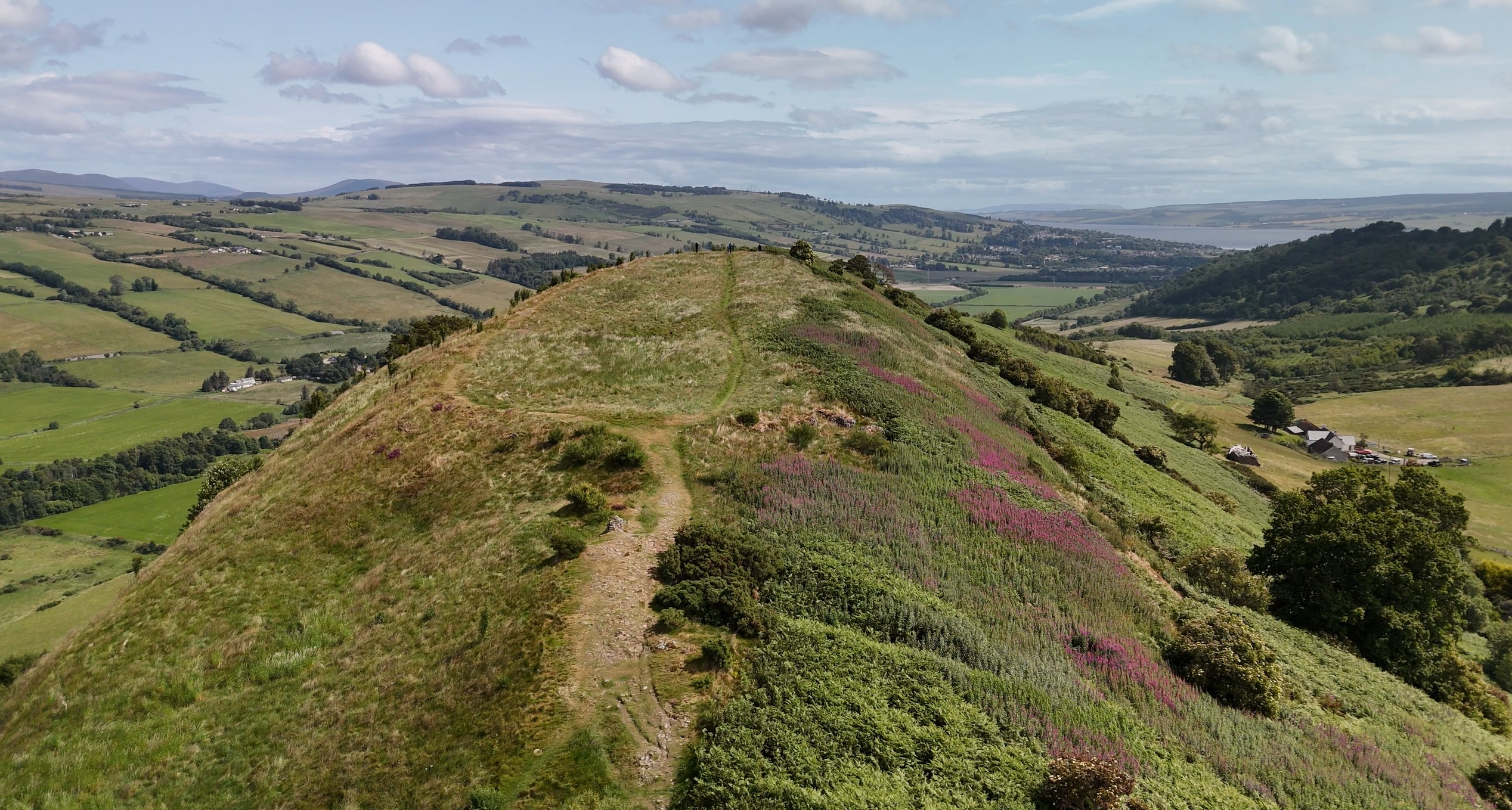 A short walk up from the car park brings you to the top of Knockfarrell, and the remains of a vitrified Iron Age fort, stunning views around, and a reasonable place to fly - although watch out for the Red Kite and the winds!!