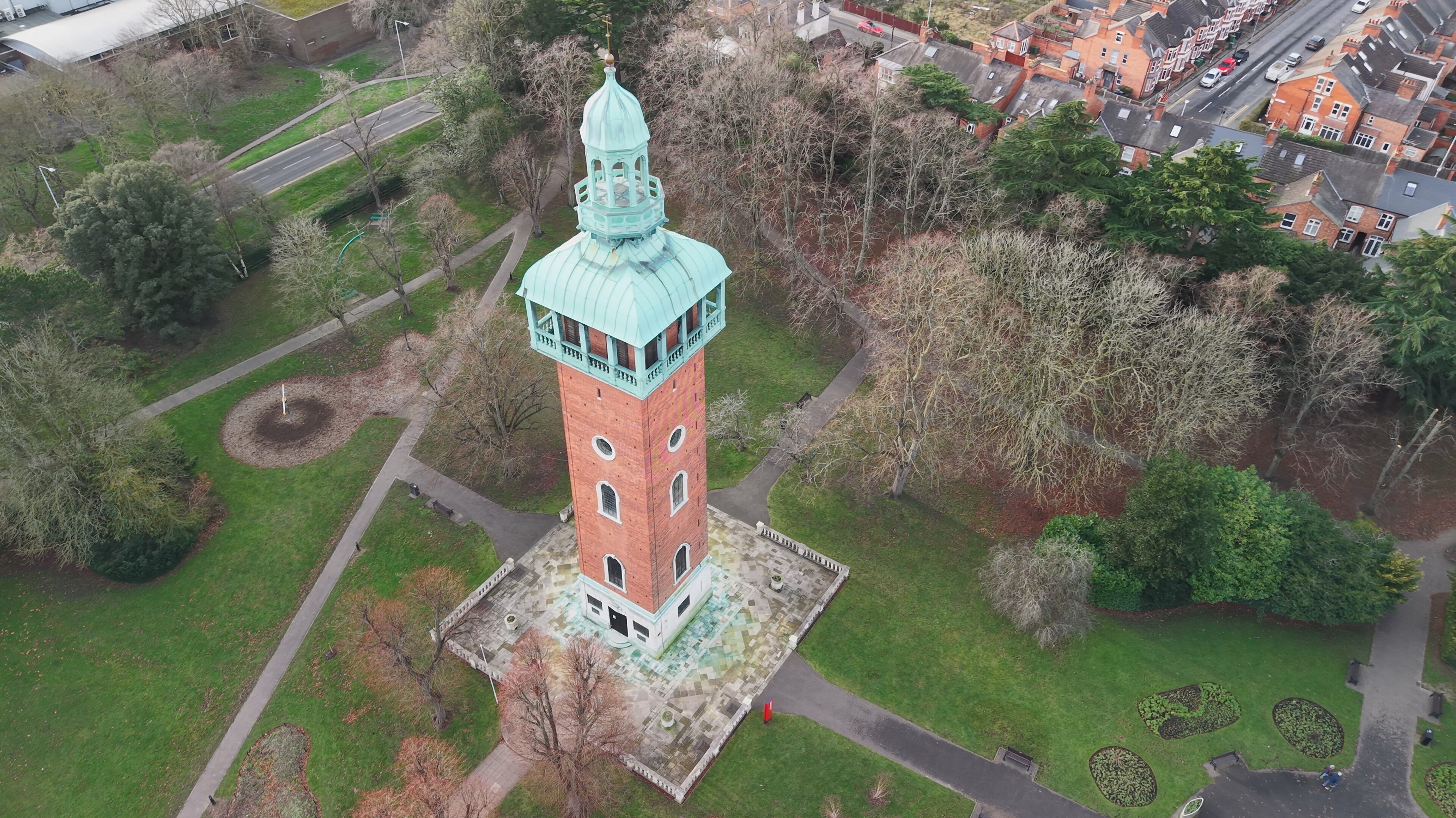 The Carillon War Memorial in Queen’s Park is situated in the centre of Loughborough, with 1 hour’s free parking adjacent on Granby Street. The park can get busy at peak times.