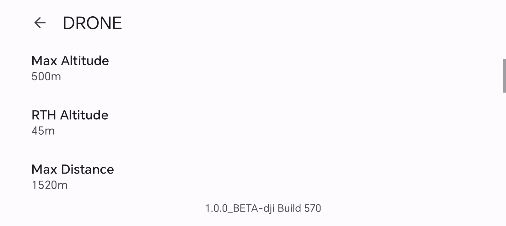 Drone powered up, went into settings and 120 max