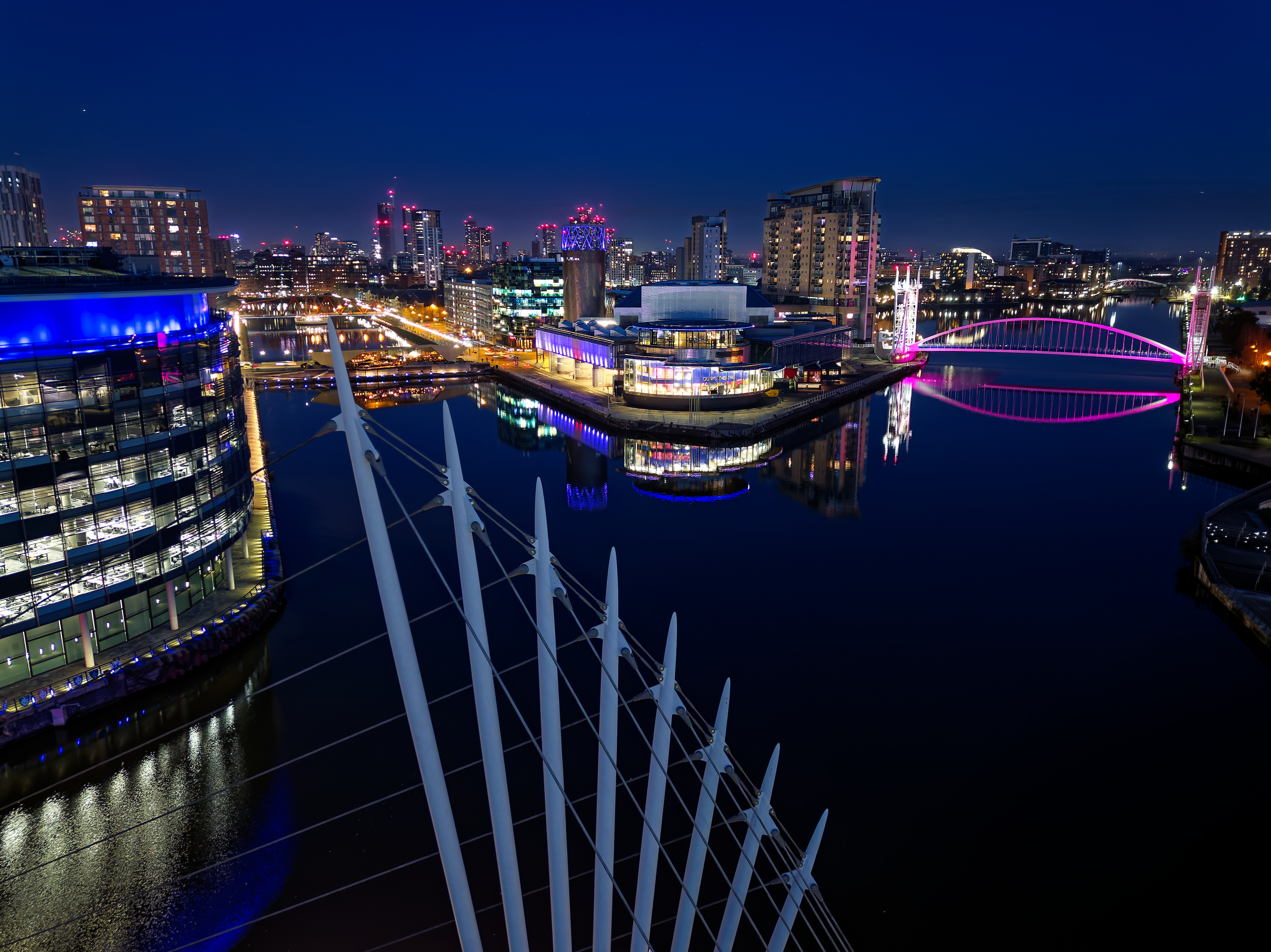 I flew from a bench on the south side of the Manchester Ship Canal. There are plenty of interesting bridges and modern buildings to photograph here, including The Lowry and the Imperial War Museum North.